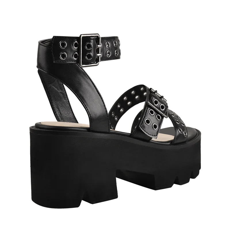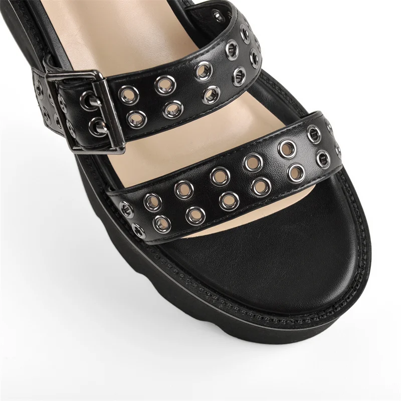 Женские босоножки на платформе Onlymaker, летние сандалии на массивном каблуке с открытым носком и металлическими кольцами, полые, матовые, черные, большие размеры, 2021