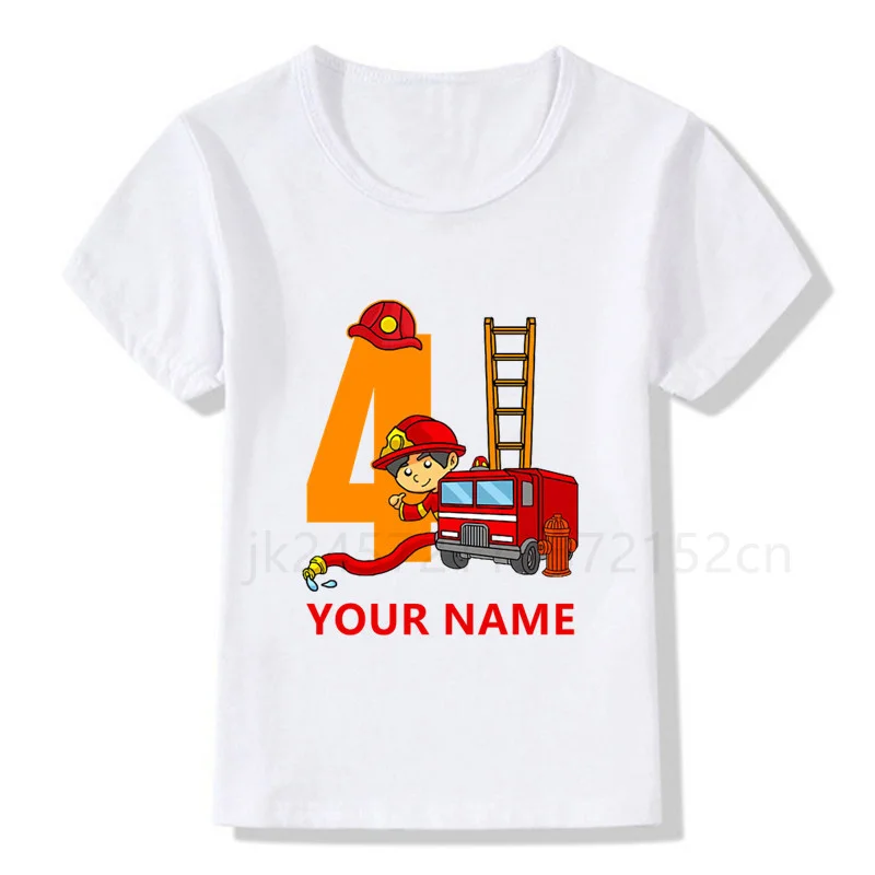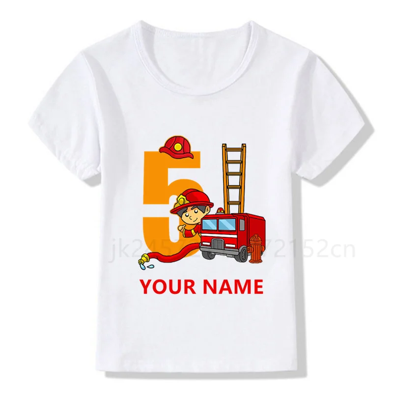 Для маленьких мальчиковдевочек крутое название для малышей с изображением пожарной машины для дня рождения цифр футболка детские футболки для мальчиков с днем рождения Футболка белая футболка для малышей