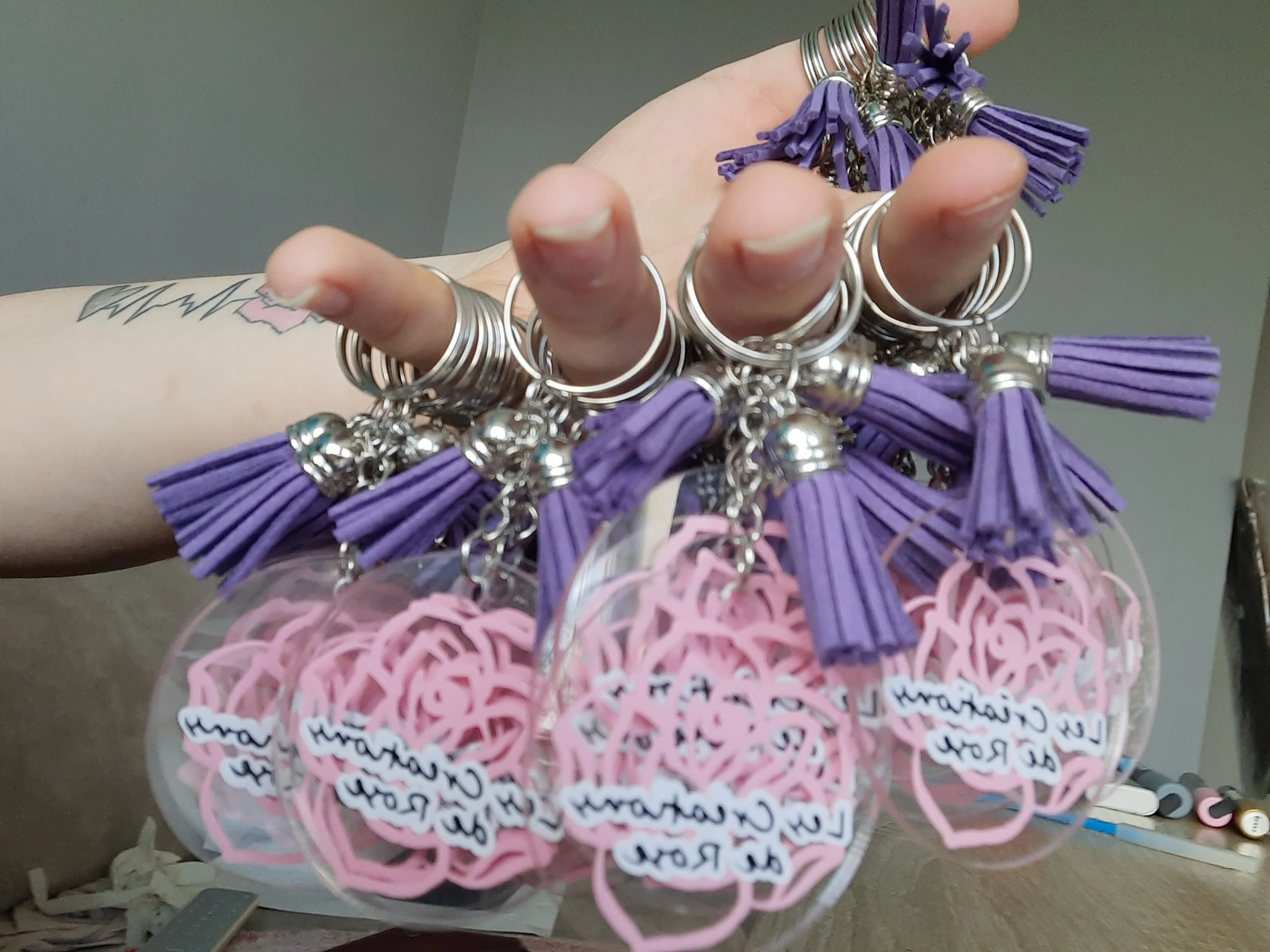 Вы получаете то, что вы покупаете, buncha круглые акриловые keychainn заготовки, с защитной крышкой, так что ни были поцарапаны