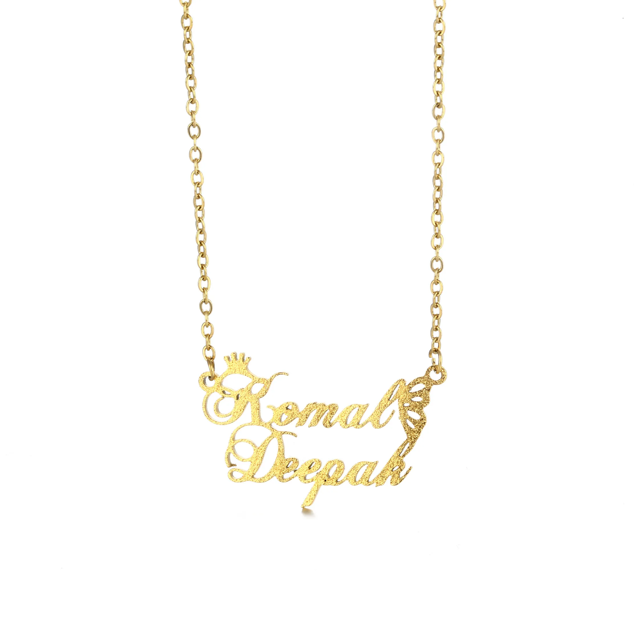 Двойные имена пары матовое индивидуальное ожерелье персонализированное ожерелье из нержавеющей стали с бабочкой и табличкой для подарка на День святого Валентина