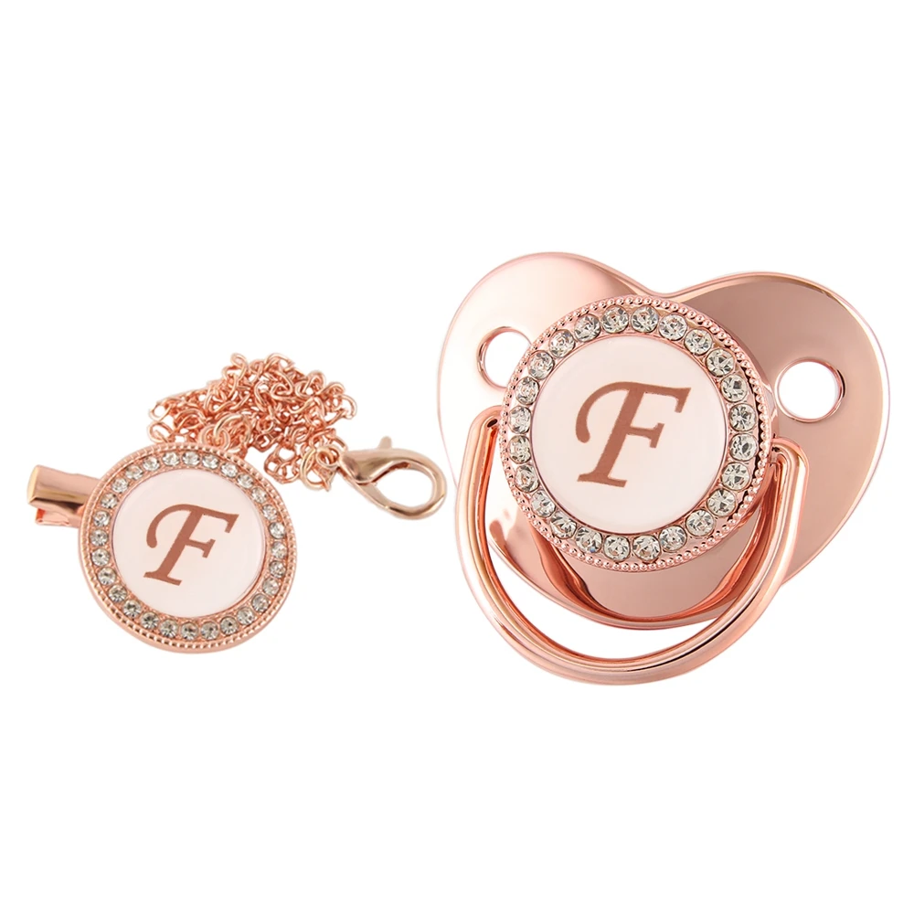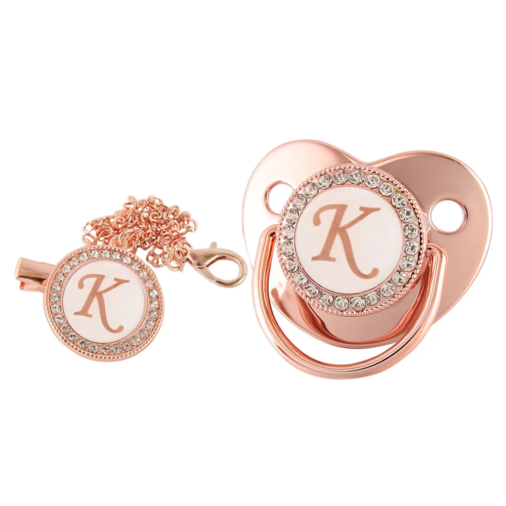 26 букв детская пустышка на цепочке с прищепкой клип из розового золота Bling Держатель соски силиконовые пустышки для младенцев соска пустышки для младенцев; Подарок на нулевой день рождения