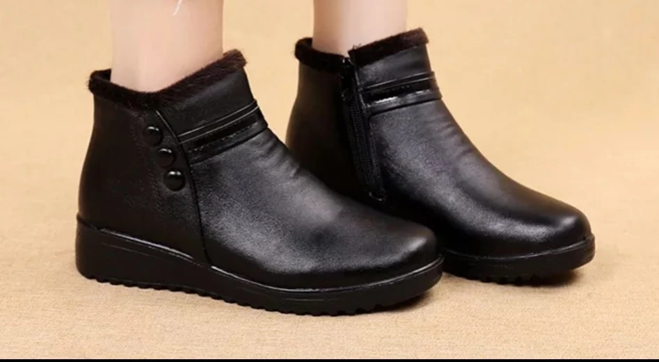 Новинка 2021, модные зимние теплые плюшевые флисовые ботильоны, женская обувь, короткие ботинки на танкетке, удобная обувь, большой размер 42, черные с круглым носком