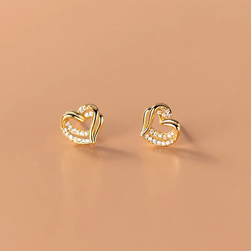 WANTME 925 стерлингового серебра с двойной любящее сердце, серьги со шпилькой, для женщин, модные романтический свадебный подруге, ювелирное изделие, подарок