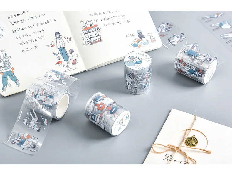 Милая ежедневная прозрачная Маскировочная Васи-лента из ПВХ для девочек и мальчиков, декоративная клейкая лента, украшение сделай сам, наклейка для скрапбукинга, этикетка