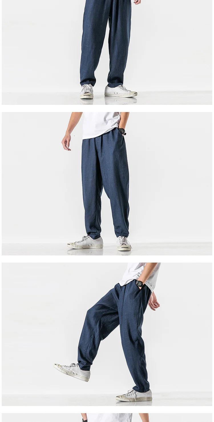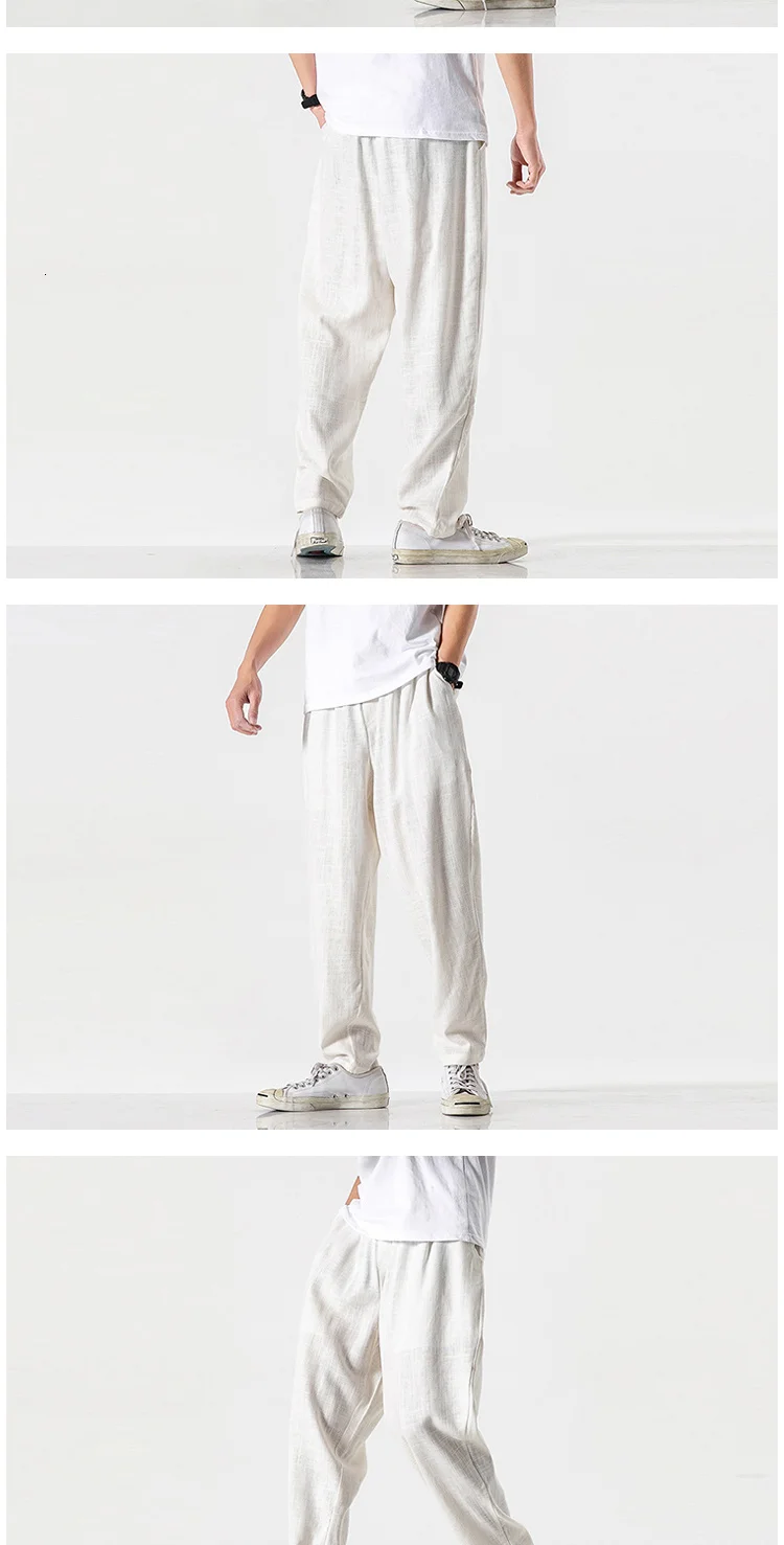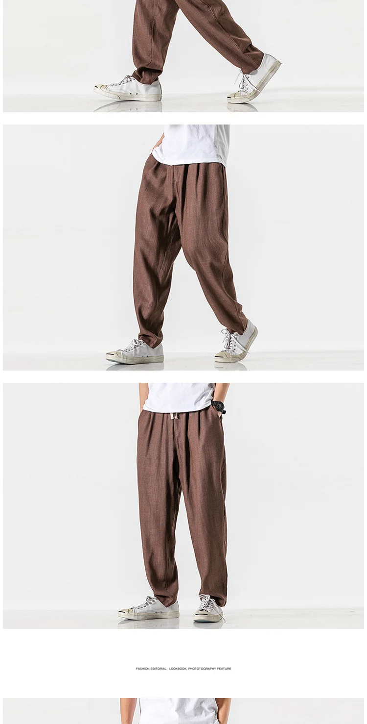 Брюки MrGB мужские оверсайз, хлопково-льняные повседневные шаровары в китайском стиле, однотонные прямые винтажные уличные штаны, мужская одежда