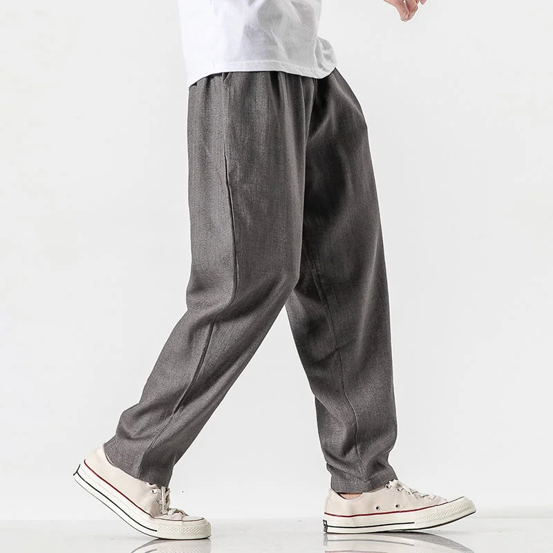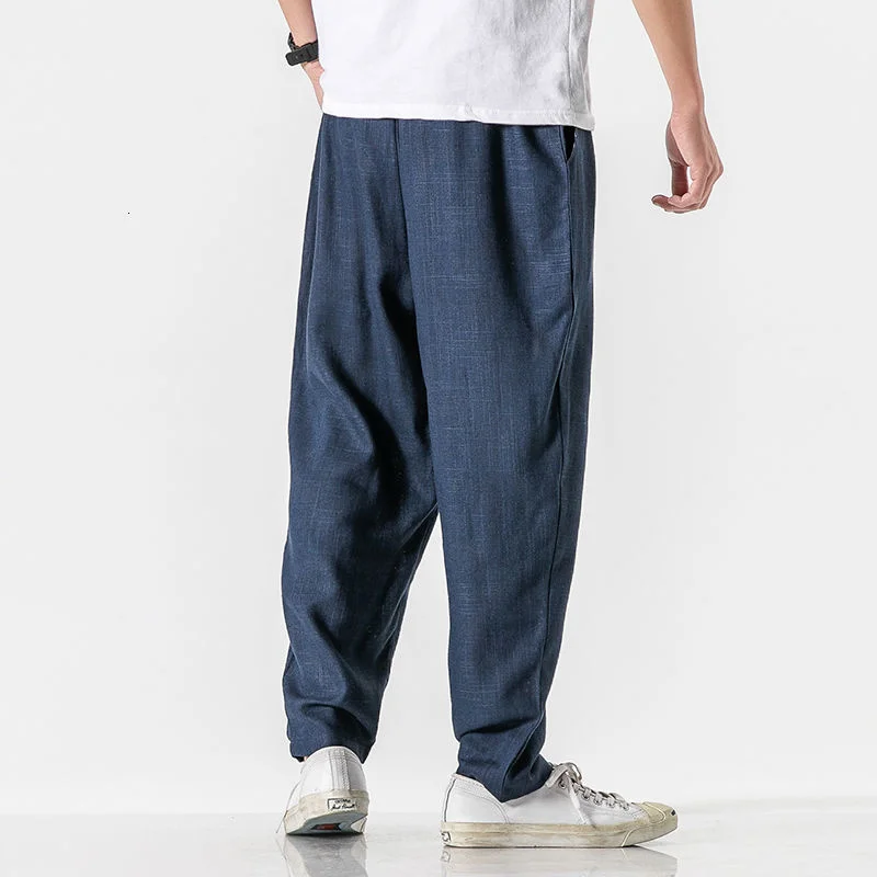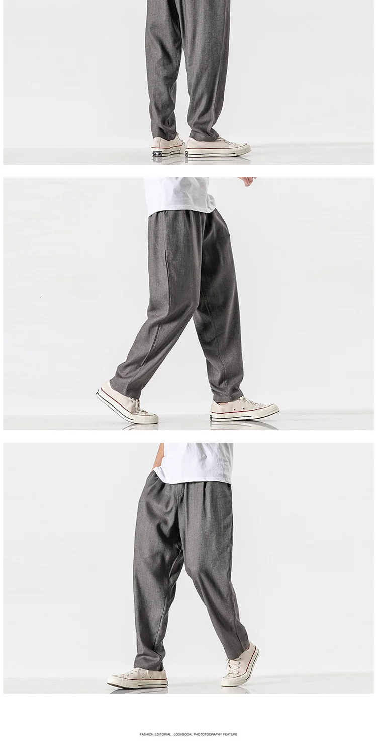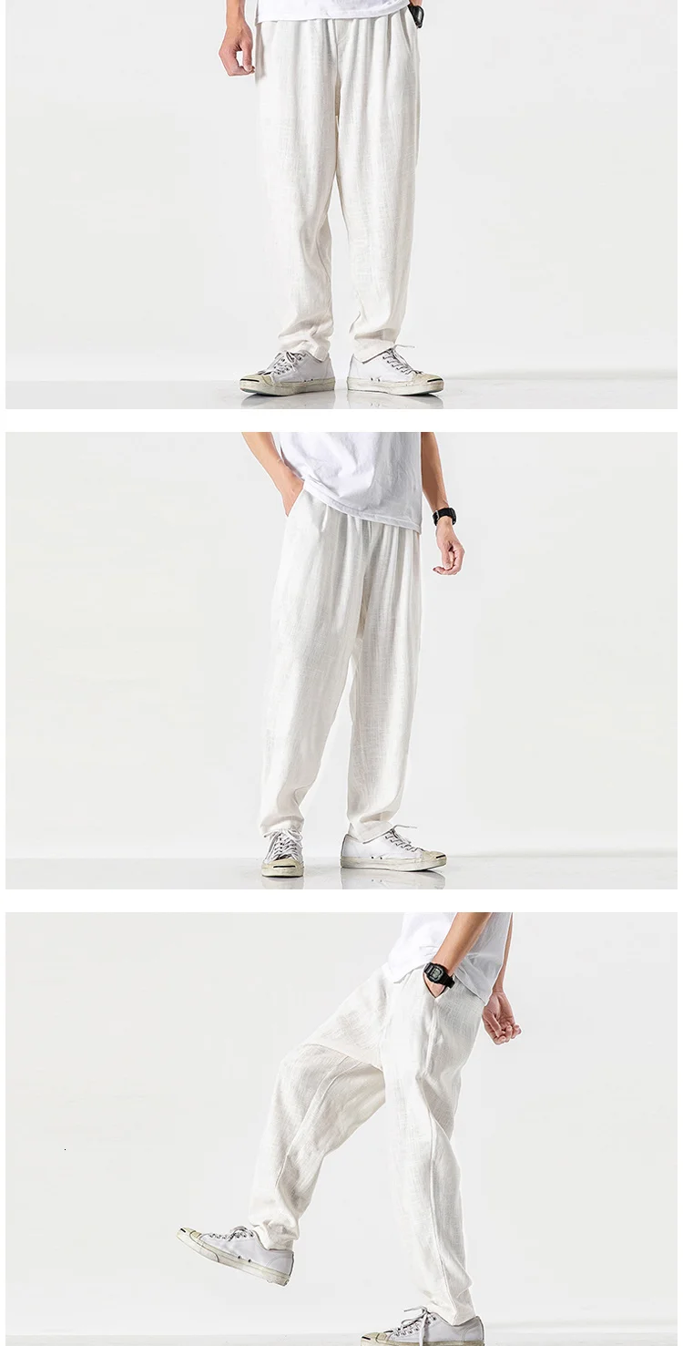 Брюки MrGB мужские оверсайз, хлопково-льняные повседневные шаровары в китайском стиле, однотонные прямые винтажные уличные штаны, мужская одежда
