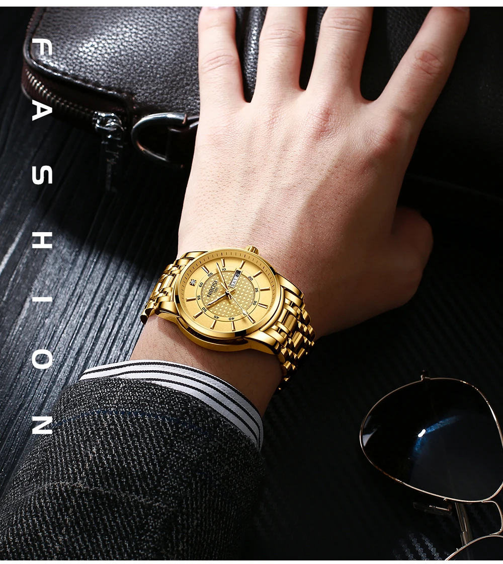 Мужские золотые деловые часы NIBOSI, светящиеся водонепроницаемые к...