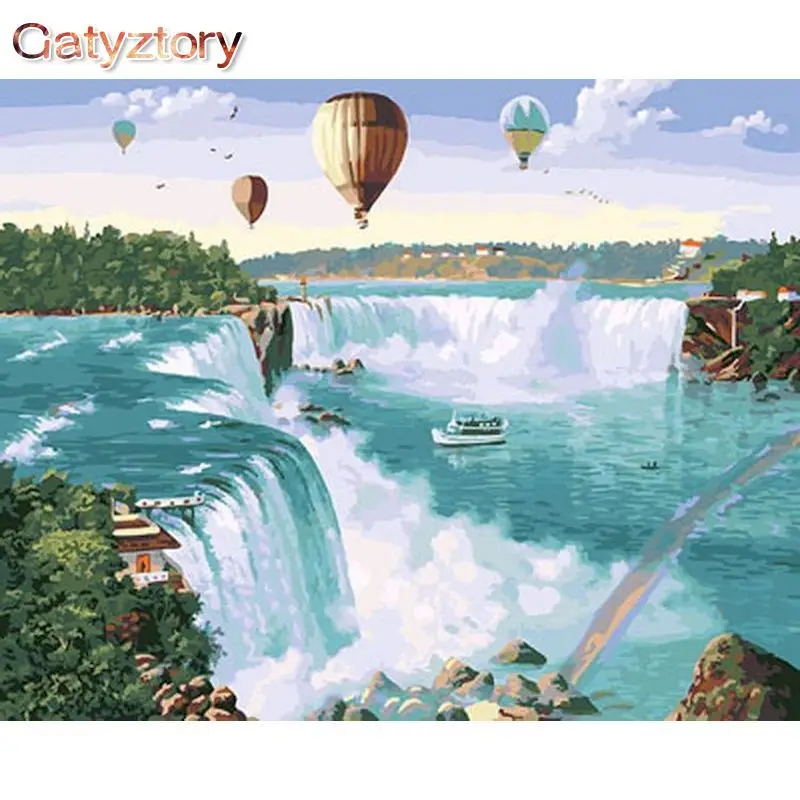 GATYZTORY Краски Раскраска по номерам Наборы горный рисунок на холсте маслом вручную Краски ed искусство подарок Сделай Сам картины Кристальное Раскраска по номерам комплекты "Водопад" Наборы домашний декор