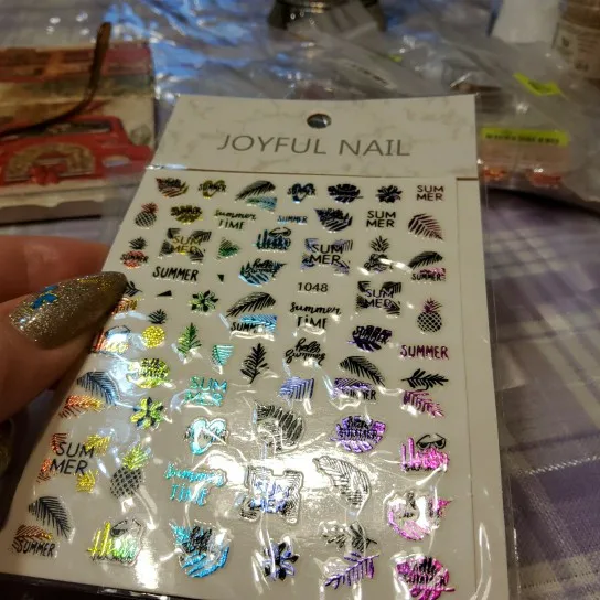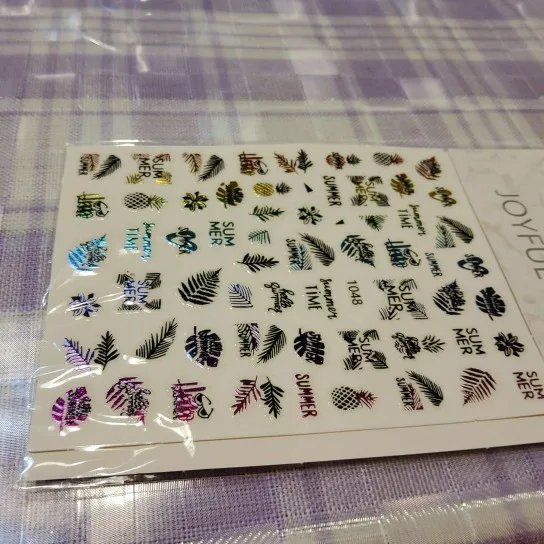 Цветные переливающиеся бронзирующие 3D наклейки для ногтей летние т...
