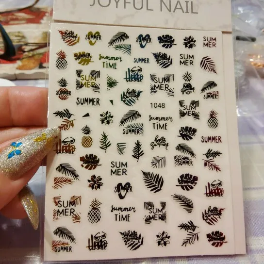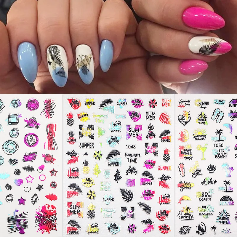 1 шт. летние тропические растения 3D наклейка для ногтей переливающ...