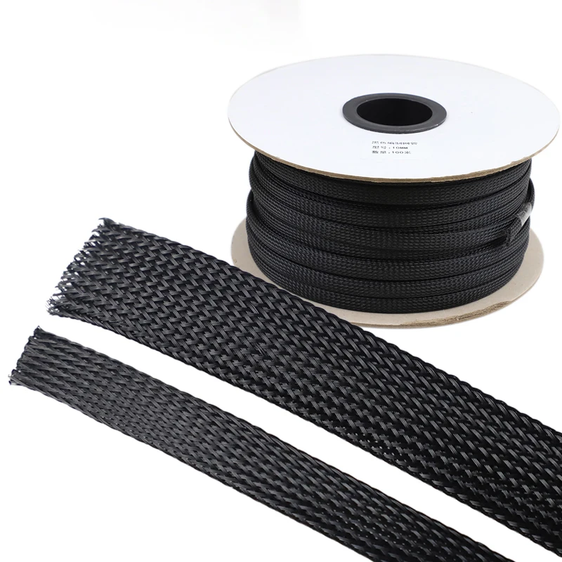 Черная Плетеная трубка из ПЭТ труба диаметром 6, 8, 10, 12, 16 мм защитная трубка из трех нетканых материалов с зашифрованным проводом Огнестойкая