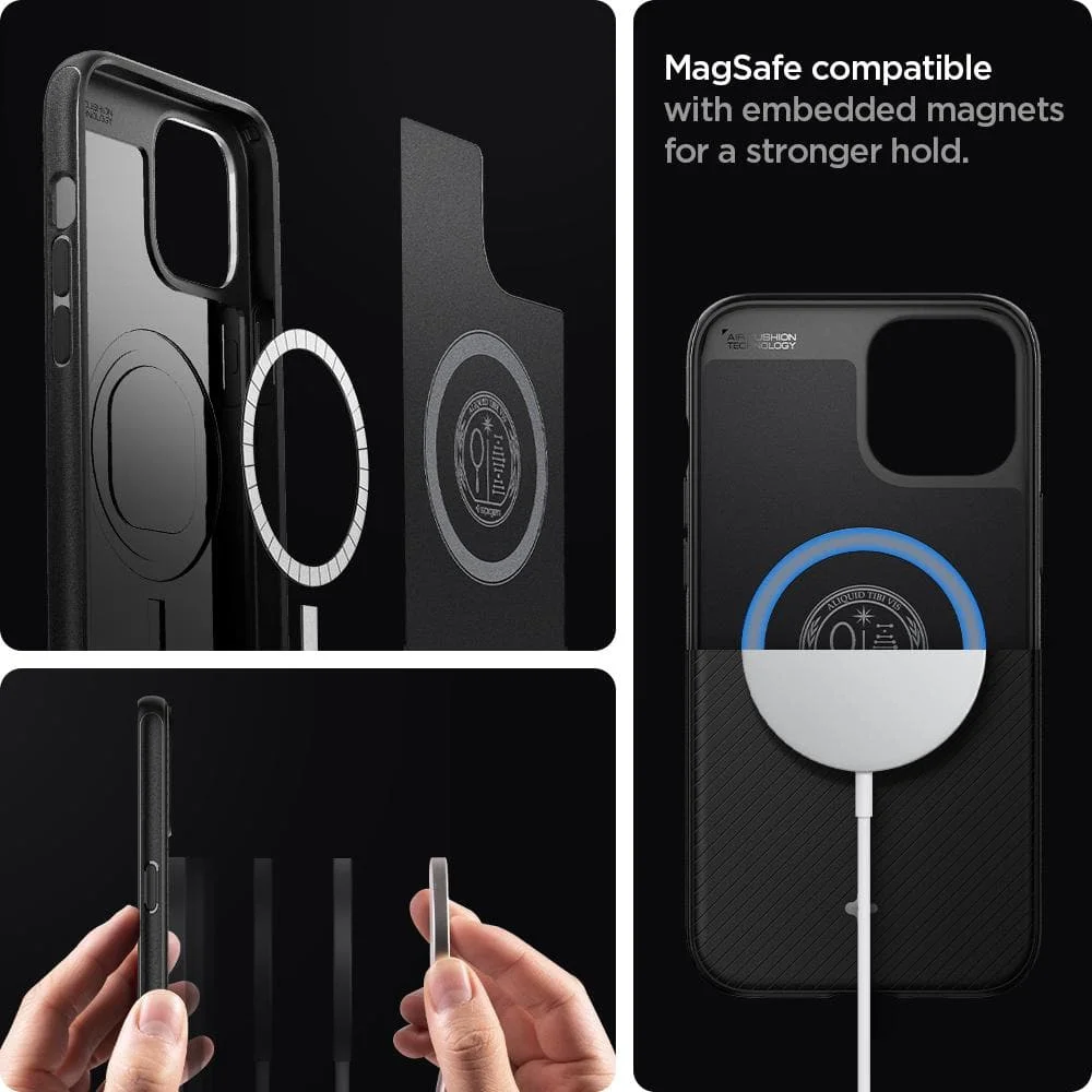 Будьте одним из первых, чтобы одеть свой новый iPhone 12 Pro Max с броней Mag; Первый чехол Spigen предназначен для MagSafe. Благодаря проводящему магнитному кольцу внутри этот гладкий цельный чехол полностью покрыл все ваши потребности в зарядке и защите. Бросайте доспехи и краснейте люк.