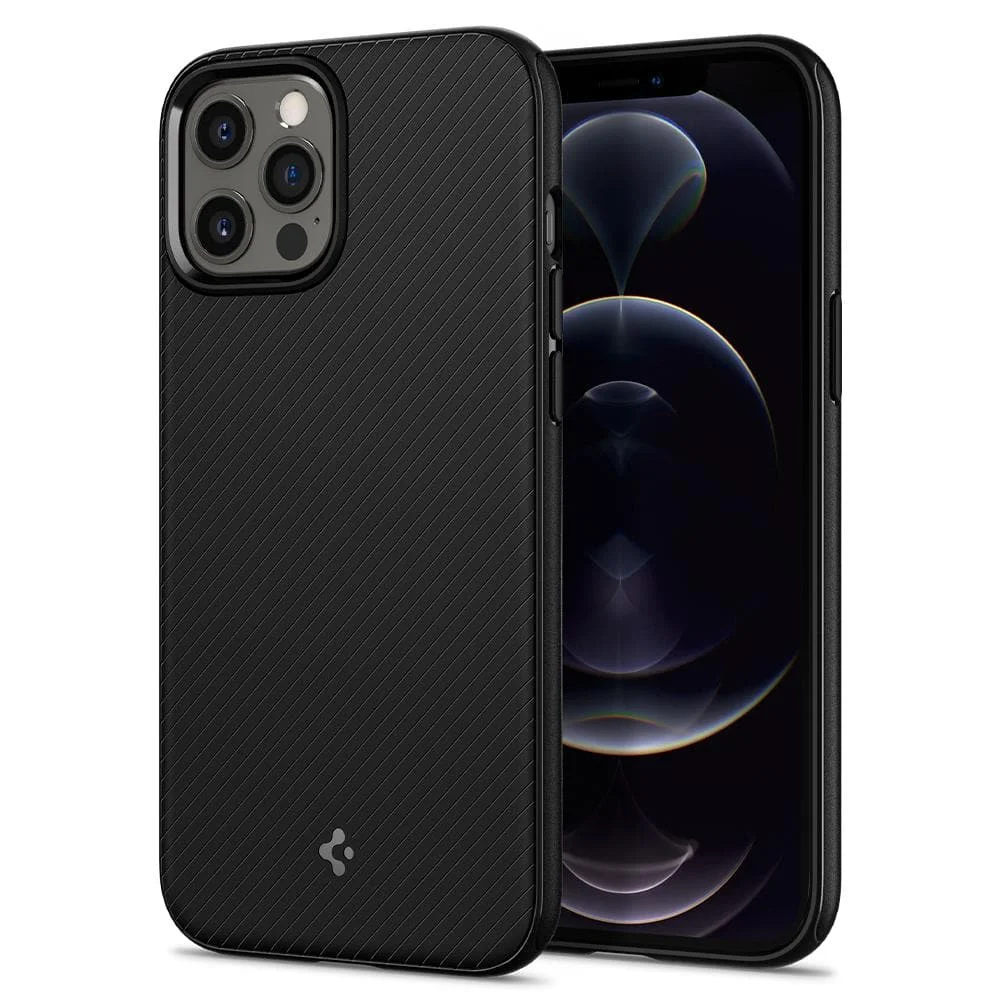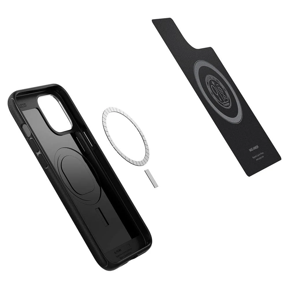 Чехол для iPhone 12 Mini Pro Max A2172 A2176 A2341 A2342 Spigen Mag Armor встроенное магнитное кольцо тонкий матовый защитный черный чехол