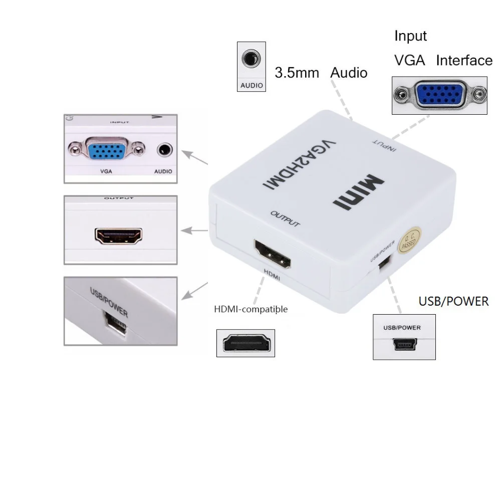Мини-конвертер Grwibeou VGA2HDMI, 1080P, VGA, HDMI