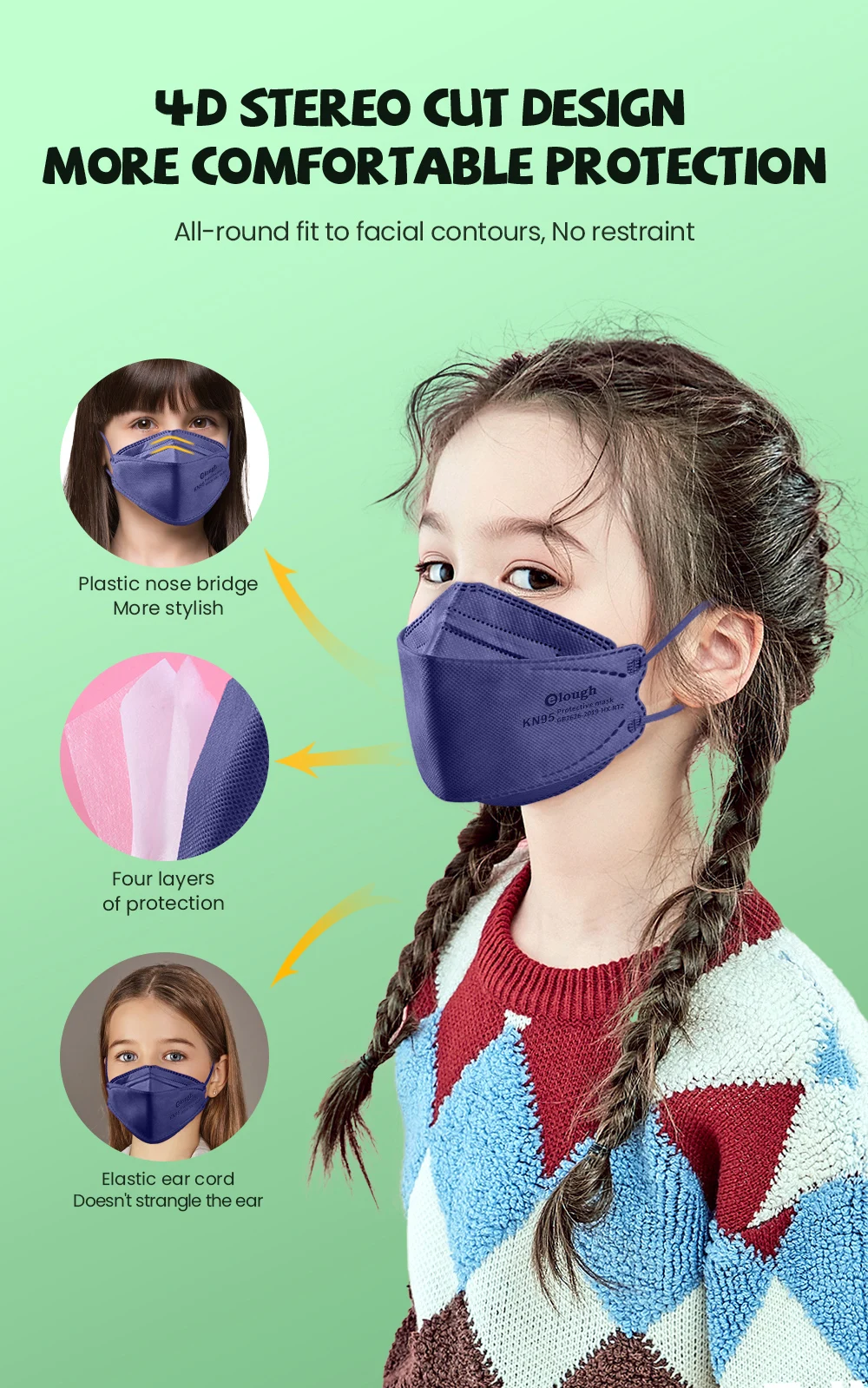 4 слойные маски FFP2 для детей, 20-100 шт., маски KN95, маски для л...