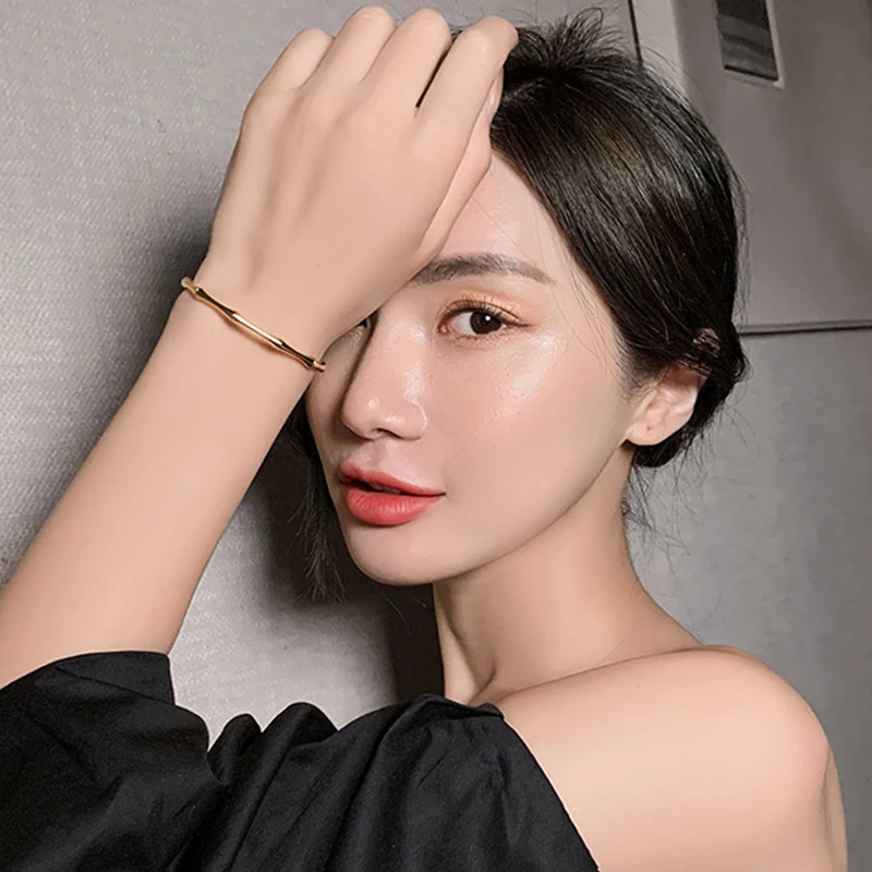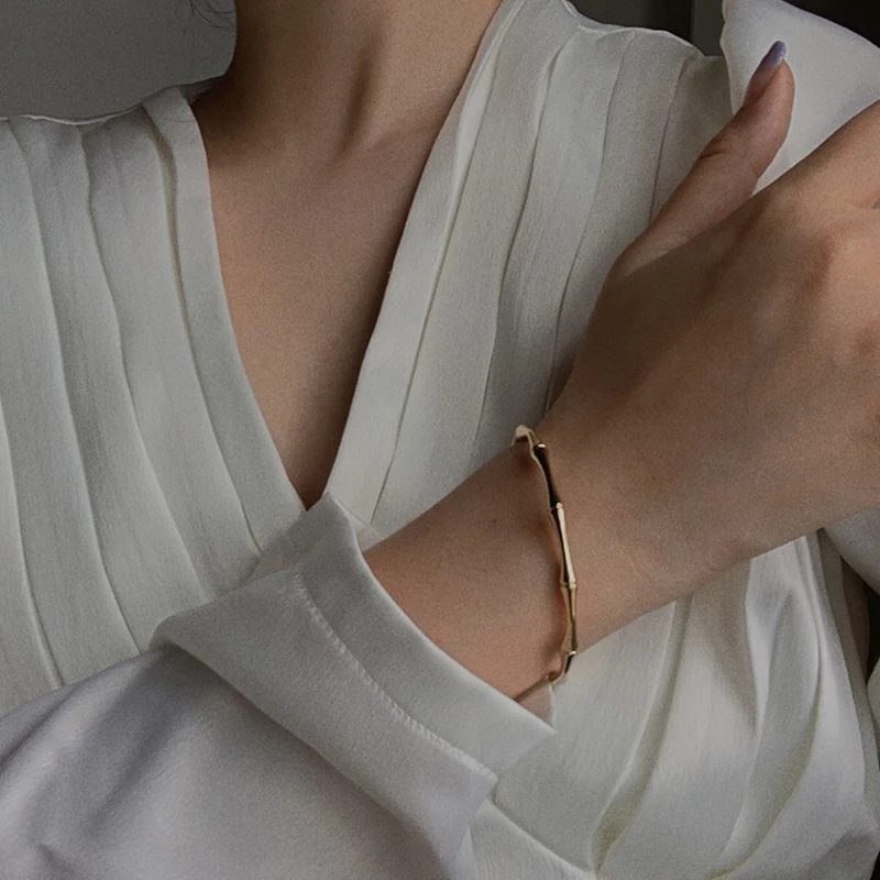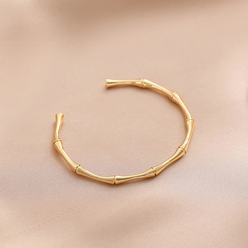 2021 золото Цвет с браслет в форме бамбука тонкие браслеты с геометрическим орнаментом для Для женщин Открытые минималистский манжеты, регулирующийся размер, 2021 ювелирные изделия