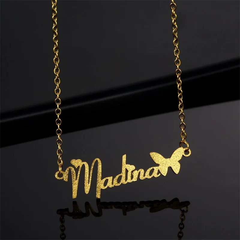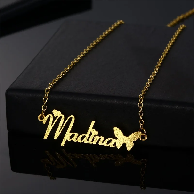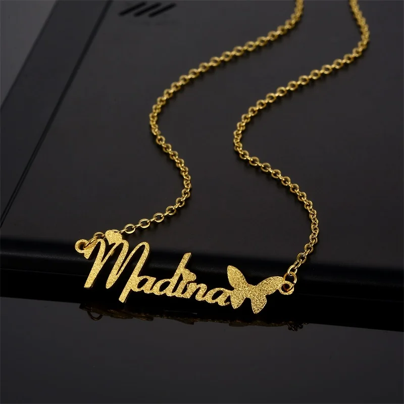 Индивидуальное ожерелье с именем бабочки, золотая цепочка из нержав...