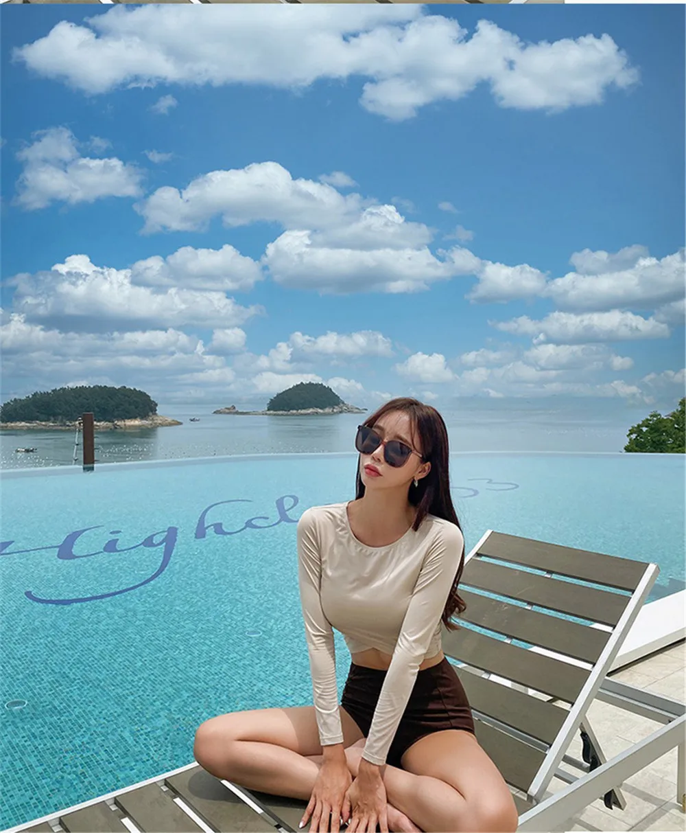 Купальник женский с длинным рукавом, Раздельный купальник на молнии...