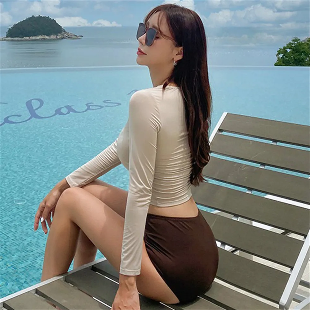 Купальник женский с длинным рукавом, однотонный купальник, пикантны...