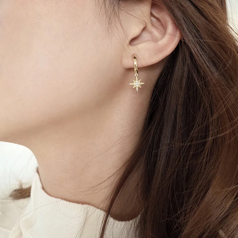 Женские серьги со звездой и луной, классические геометрические Вися...