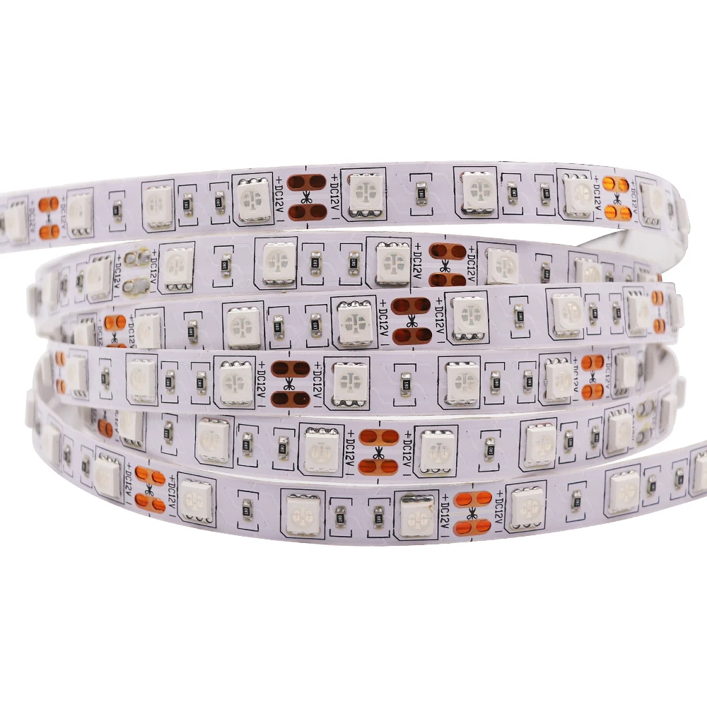 Светодиодная лента RGB, 5 м, 12 В, 24 В, 5050, 60 светодиодовм, 120...