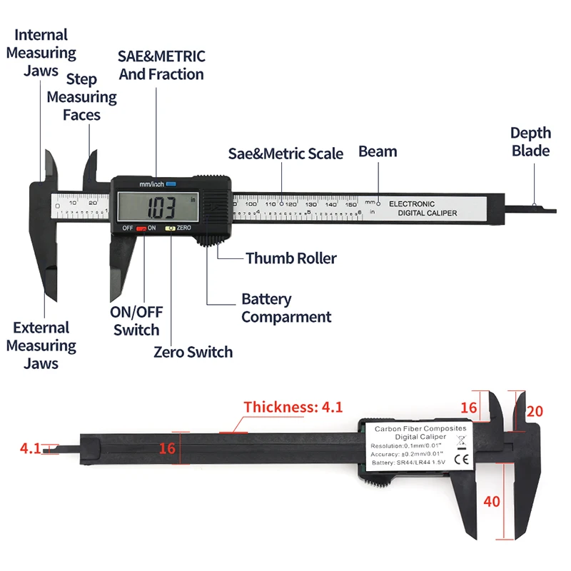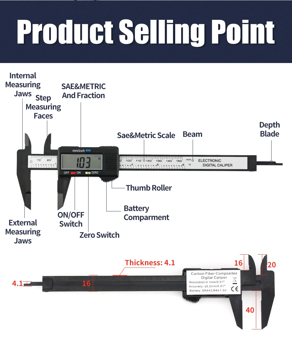Пластиковый цифровой штангенциркуль из углеродного волокна, Электронный штангенциркуль, инструменты для деревообработки, микрометр, измерительный инструмент