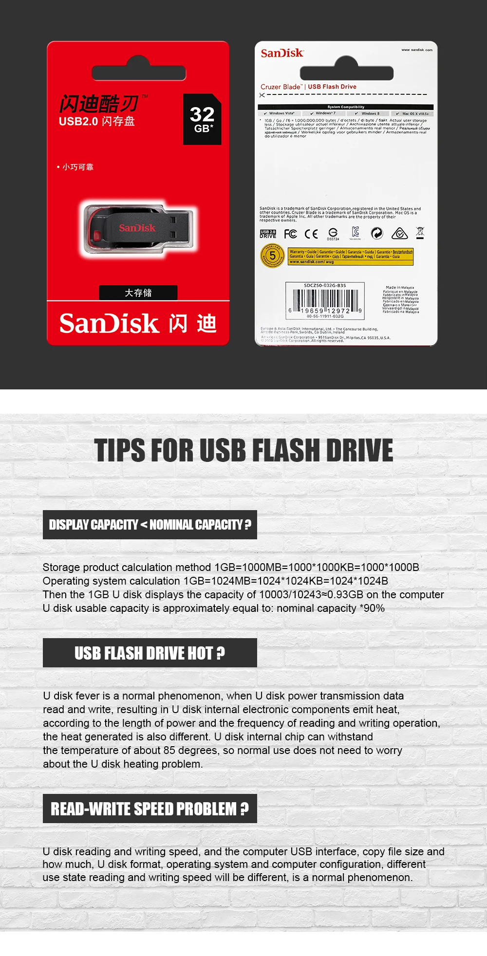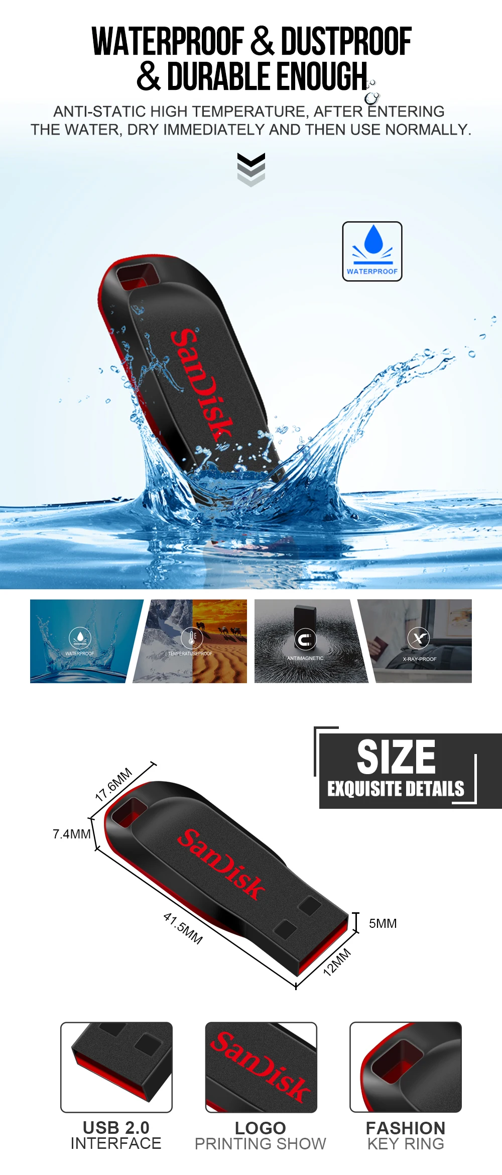 Оригинальный USB-флеш-накопитель SanDisk Cruzer Blade CZ50, 128 ГБ, 64 ГБ, 32 ГБ, 16 ГБ, флеш-накопитель USB 2,0, поддержка официальной проверки