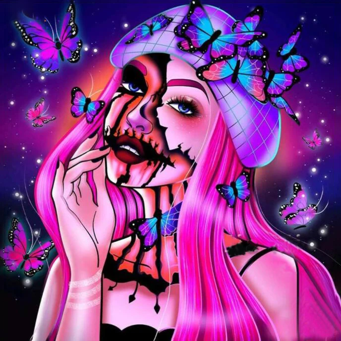 Полностью квадратные круглые бабочки призрак женщина лицо ремесло 5D алмазная картина вышивка Готическая Леди Череп картина мозаика подарок