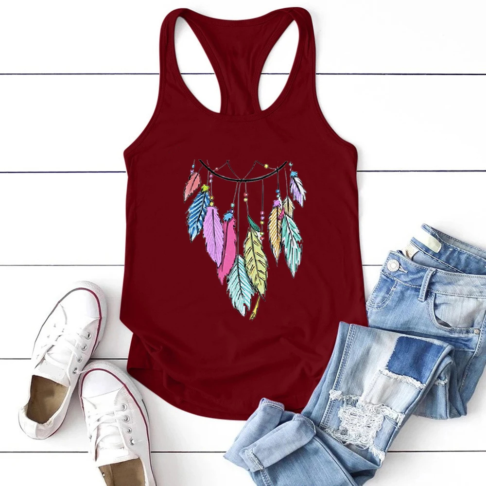 Harajuku винтажные женские топы без рукавов с принтом перьев, летние свободные топы без рукавов размера плюс, Femme Vest Camisetas De Mujer