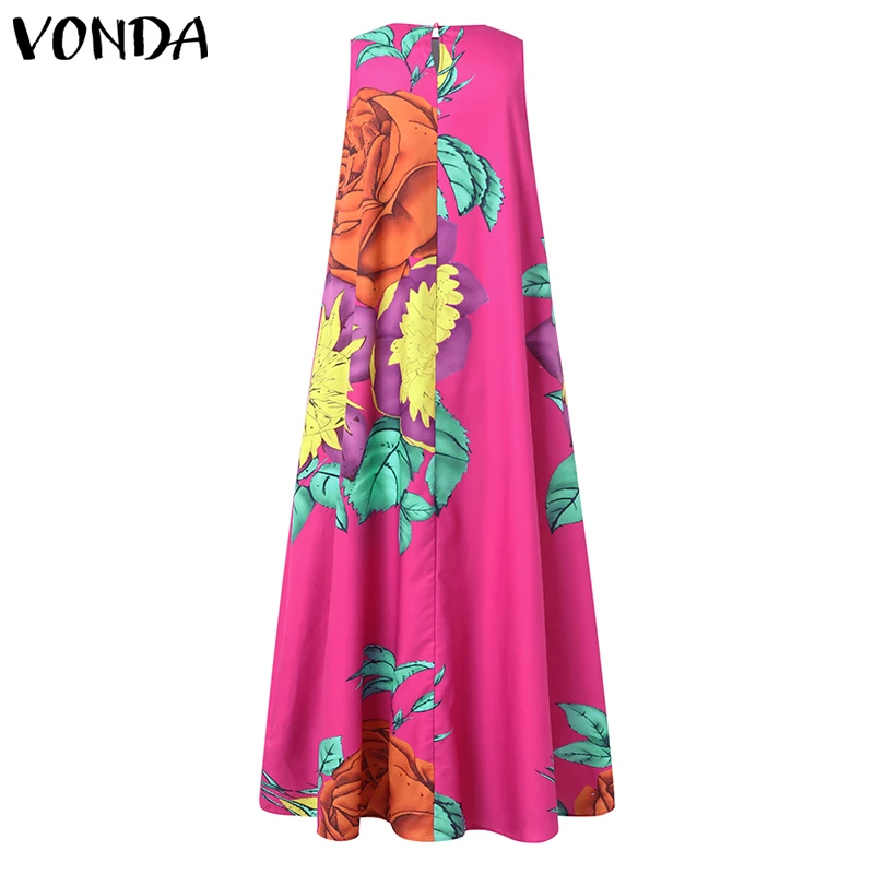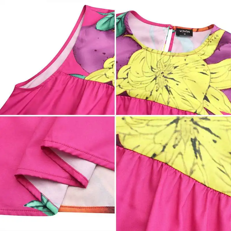 VONDA для женщин летнее платье Макси Дамы Печатных Платье без рукавов в богемном стиле, Vestidos, сексуальное платье без рукавов Цветочный принт Пляжное платье Femme