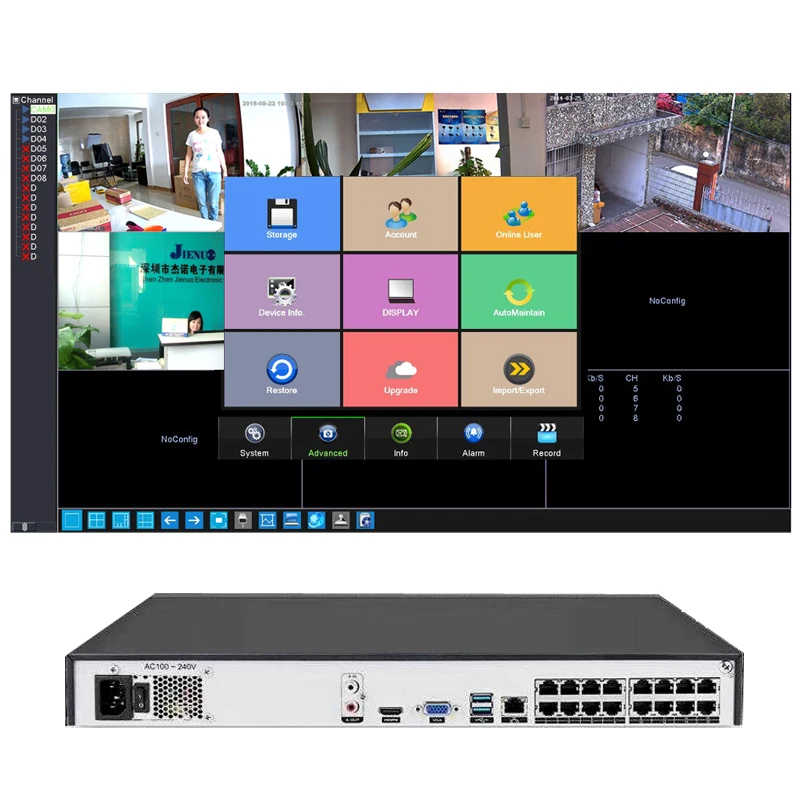 16CH POE 4K POE IP NVR рекордерМощный сетевой сервер;С облачной функцией P2P;Поддержка USB, мыши, резервного копирования;Поддержка Android,iphone,ipad, ПК, просмотра cms;Поддержка выхода VGA и выхода HDMI;Поддержка входа тревоги, выхода тревоги;С высокой эффективностью сжатия видео H.265;Интерфейс HDD: SATA, поддержка от 500 Гб до 8 ТБ;Варианты многоязычного меню до 28 видов языков (английский, финский, французский, немецкий, греческий итальянский, японский, польский, португальский, русский, испанский, тайский, китайский, традиционный китайский, турция и т. Д.);* Поддержка входа камеры 4k и выхода HDMI и VGA;* Облачный сервис P2P для мобильных устройств Android/iOS Удаленный просмотр в любом месте в любое время;* Запись при обнаружении движения. Сетевой видеорегистратор срабатывает для записи при обнаружении движения. Без Триггера, без записи, более интеллектуальный и компактный;* Оповещение по электронной почте и уведомление о тревоге. При срабатывании обнаружения движения сетевой видеорегистратор автоматически отправляет звуковые и сигнальные уведомления на вашу электронную почту, включая моментальный снимок на месте;* Несколько способов доступа к ПК, телефону и планшету, можно просматривать ПК-клиентом, приложением для телефона и IE ,Chrome,Firefox, браузером;* Поддержка 2,5-дюймового жесткого диска с портом SATA (опционально), менее 3,5 Гб не поддерживает ed.Цифровой видеорегистратор HD система охранного видеонаблюдения POE NVR, поддержка всех ip-камер 1.0mp & 2.0mp & 3.0mp & 4.0mp & 5mp & 4kПосетите удаленно с помощью облака или приложения XMEyeПростая настройка и подключение