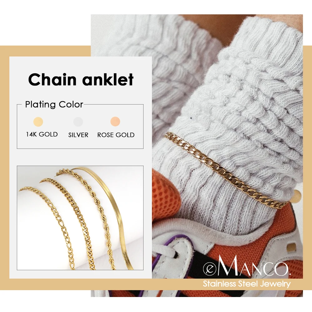 Браслеты на ногу eManco из кубинской панцирной цепи, ювелирные украшения для мужчин и женщин, из нержавеющей стали, цепочка на лодыжку