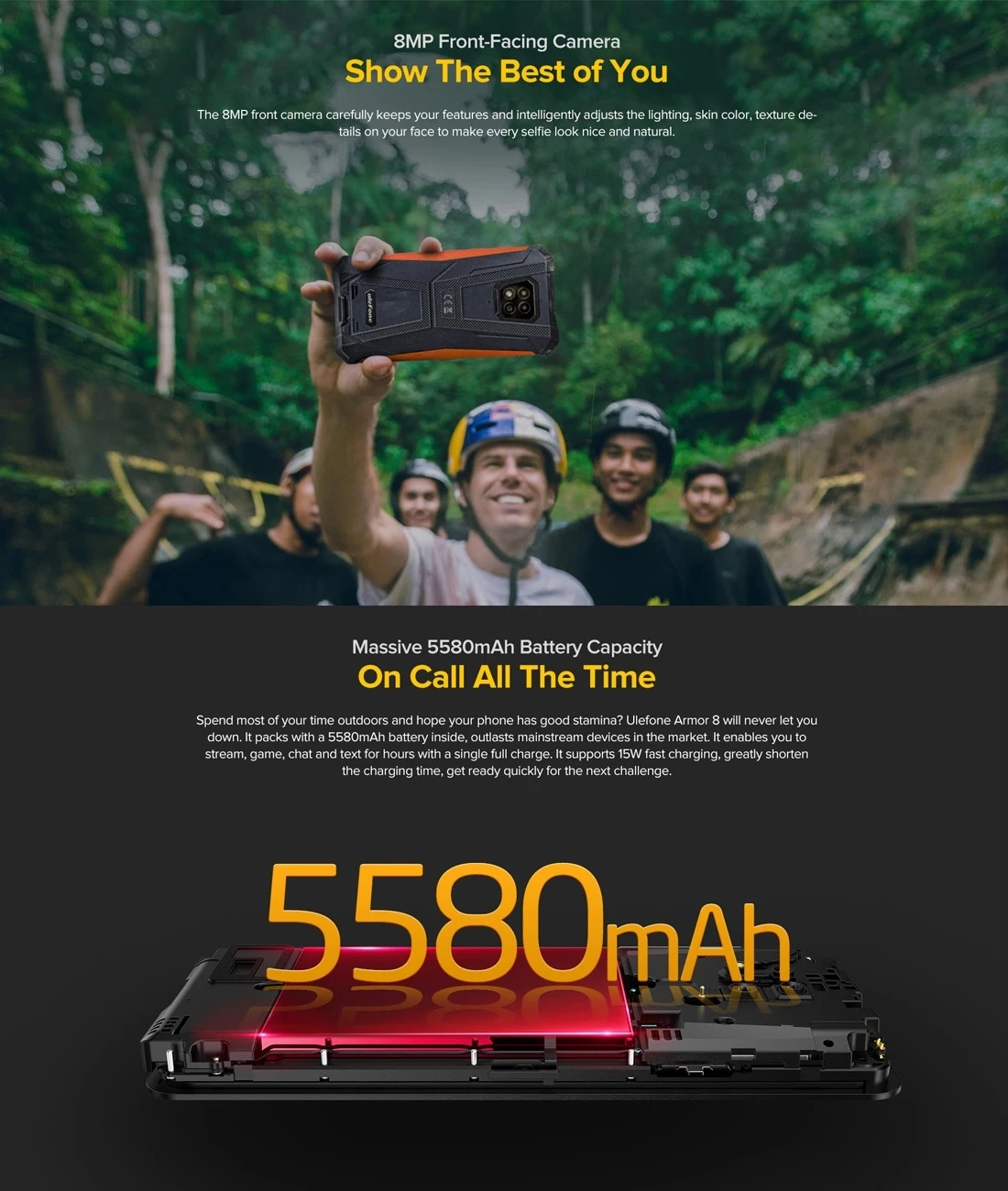 1. Helio P60 Восьмиядерный 64-разрядный до 2,0 ГГц Процессор, хорошая производительность, работает быстро и работать гладко.2. 6,1 дюймов 1560x720 пикселей, прозрачная защитная пленка, vivid цвета, хорошо подходит для просмотра видео, играть в игры.3. Всесторонняя защита на 360 градусов, прочная и долговечная в использовании.4. Уровень IP68/IP69K водонепроницаемый пыленепроницаемый ударопрочный, он может быть использован в широком использовании сценариев и приложений.5. Питание от литий-полимерного аккумулятора большой емкости 5580 мАч, длительный срок службы.