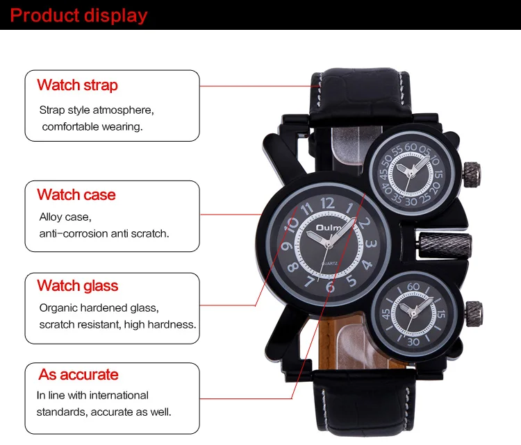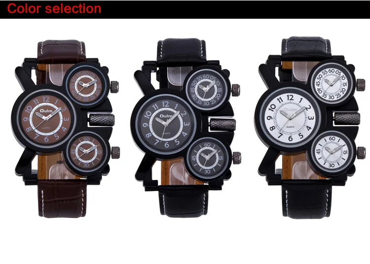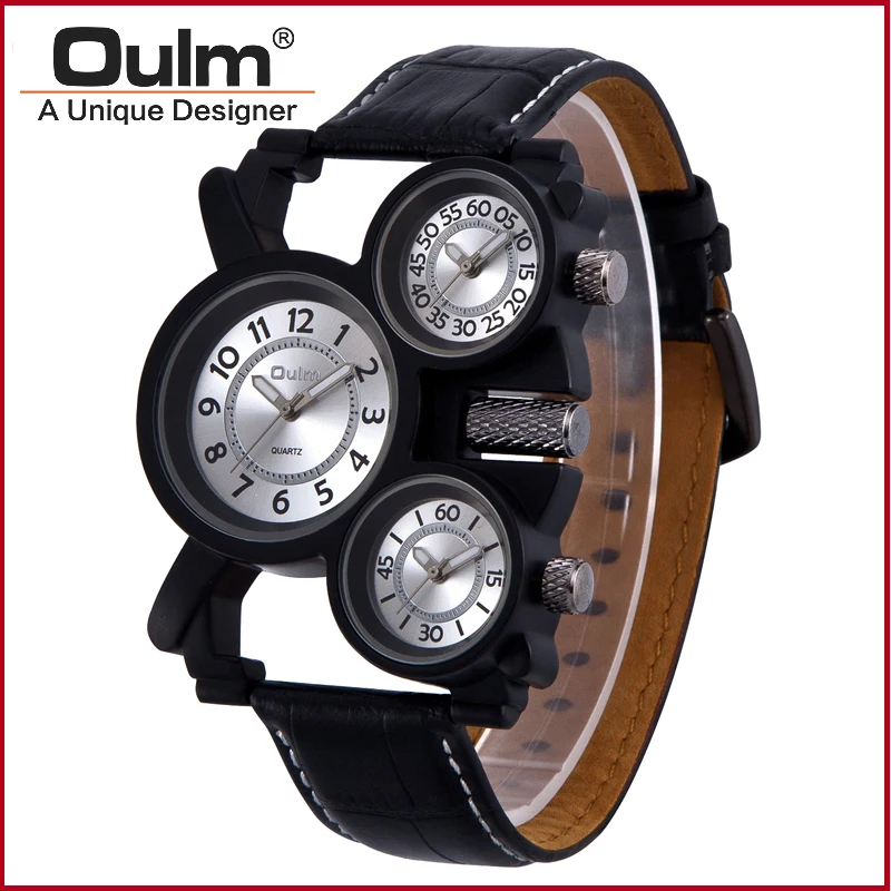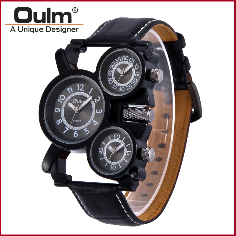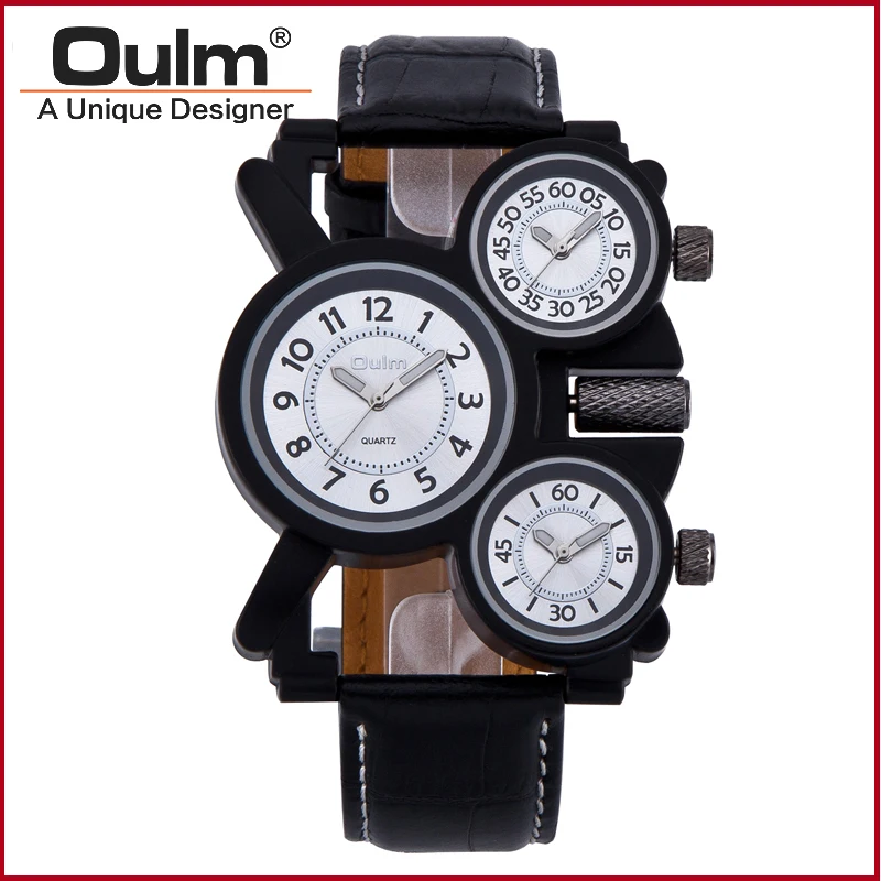 OULM 1167 Мужские Винтажные кварцевые часы в стиле стимпанк с кожаным ремешком, 3 часовых пояса, япония MOVT, повседневные