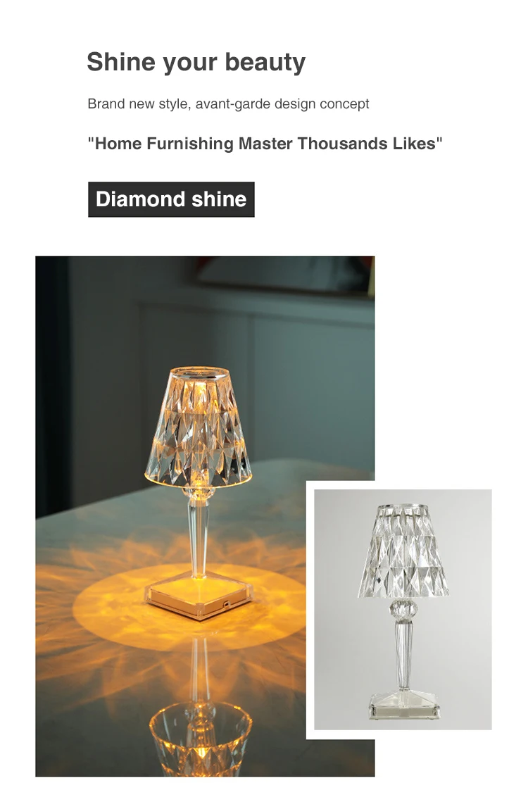 Алмазная настольная лампа, перезаряжаемые через USB Акриловые Насто...
