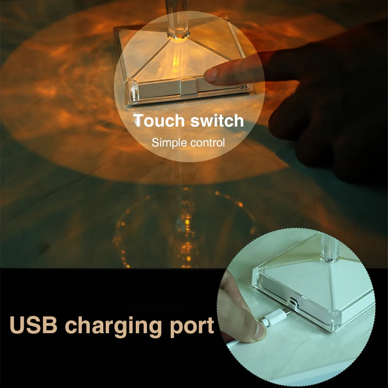 Размер изделия: основание 86 мм * высота 260 ммТехнология материала: кристалл (полированный, обрезанный)Источник продукта: импортированный тайваньский светильник 6 Вт (заводской светильник по умолчанию)Режим переключения: сенсорный переключатель метод зарядки: usb интерфейс (подходит для 6 ~ 8 часов)Время зарядки: 1-3 часа