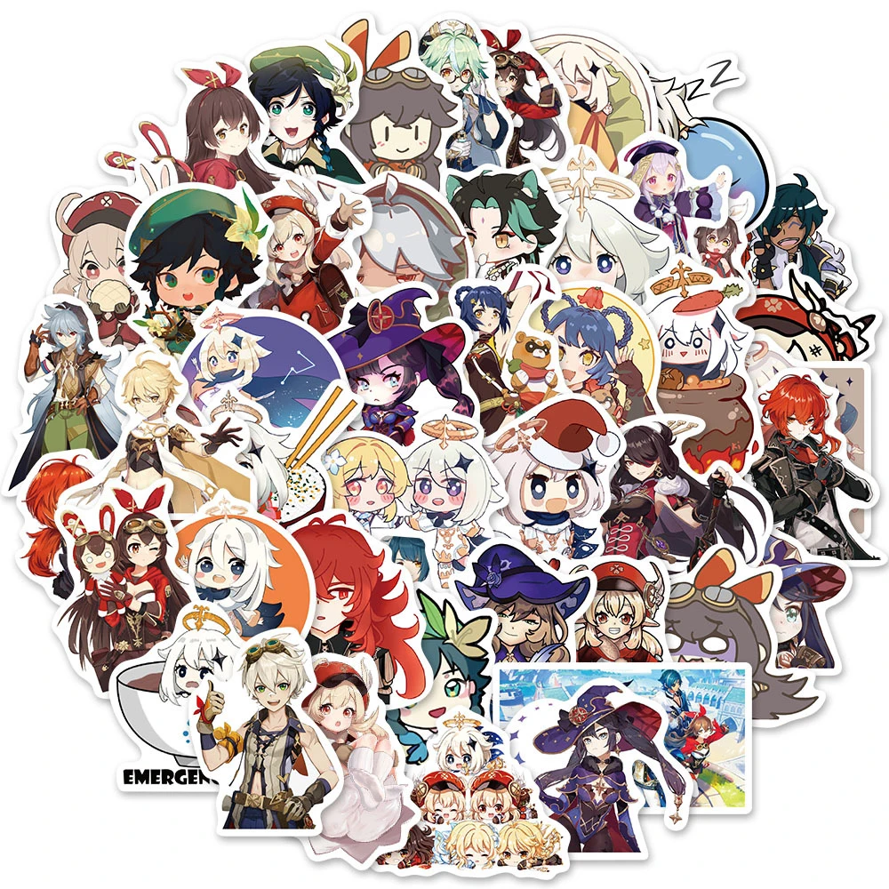 Наклейки Genshin Impact наклейки из игры, 103050 шт., для самостоятельной сборки, скейтборда, холодильника, гитары, сноуборда, мотоцикла, чемодана, наклейки-граффити