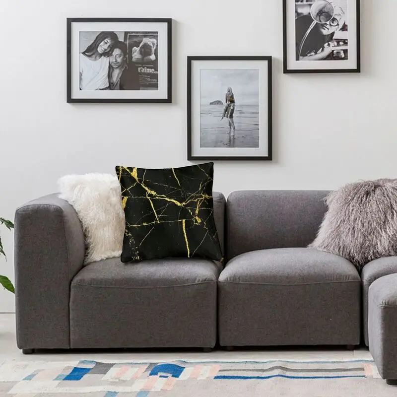 Роскошный чехол для подушки с черно-Золотой Мраморной текстурой 45x45 см домашний декор абстрактный узор современный геометрический чехол для диванной подушки