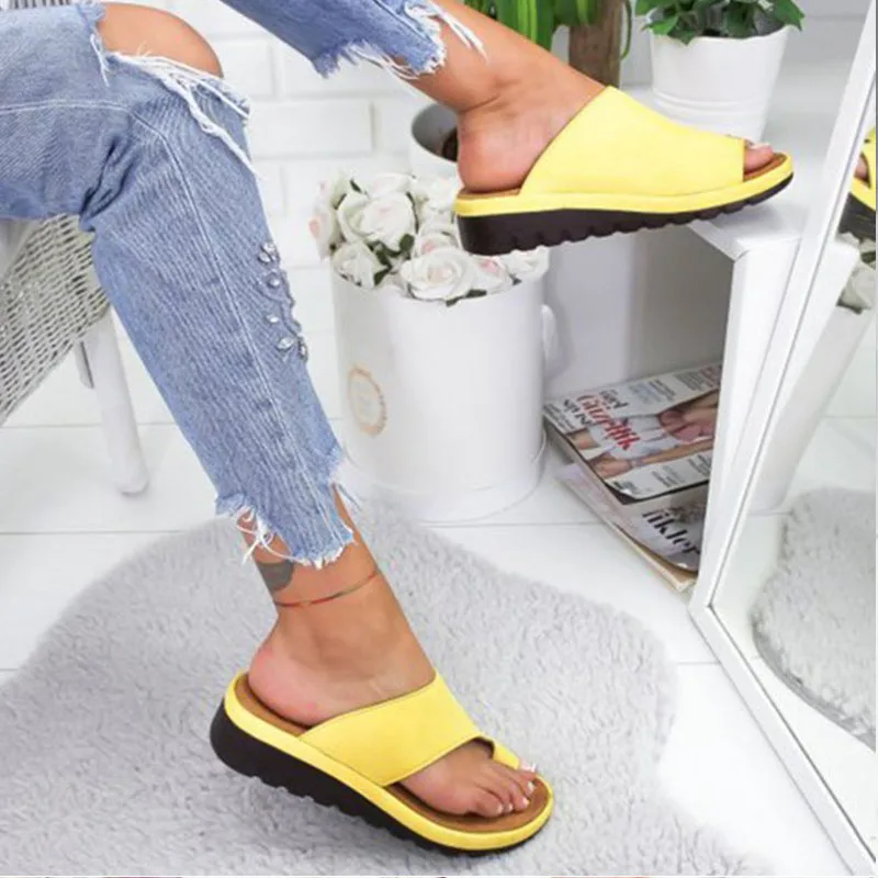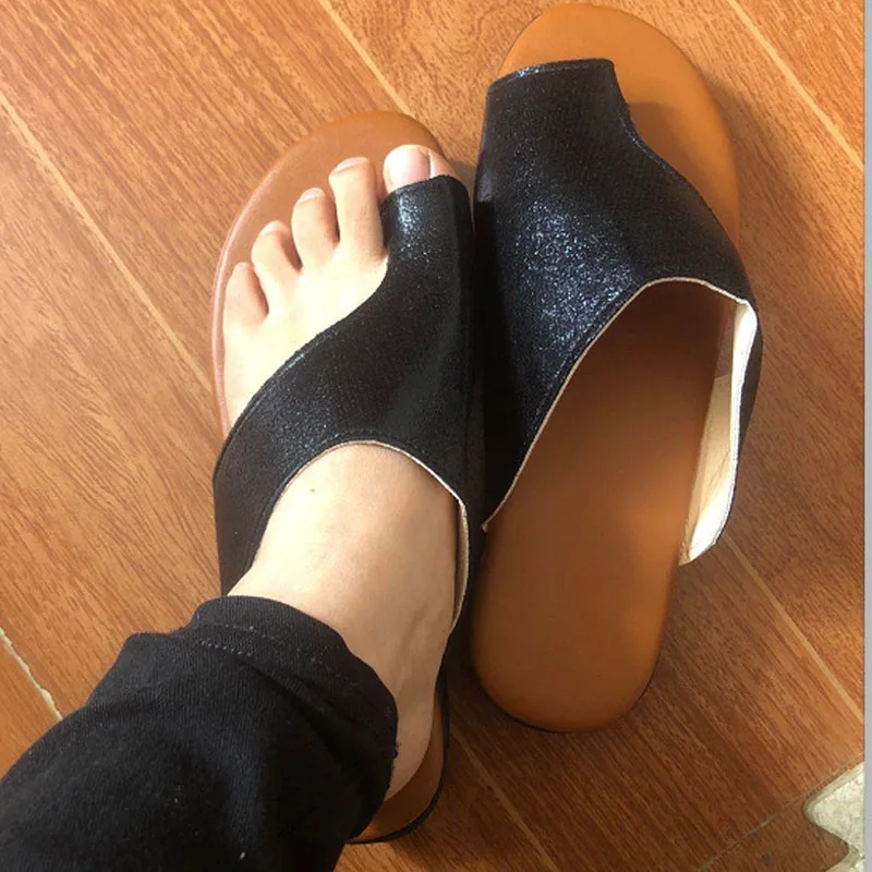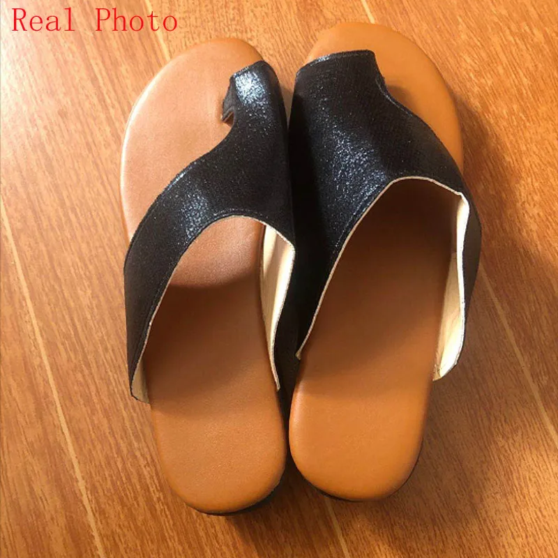 Сандалии ортопедические женские на плоской подошве, удобные дизайнерские ботинки из искусственной кожи, на платформе, коррекция большого пальца, для дома