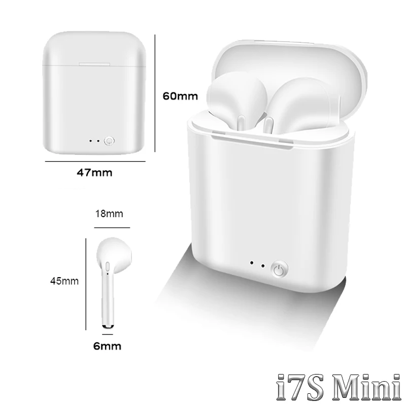 Посылка включает в себя:2 x i7s tws bluetooth наушники (левый и правый наушники)1 x Зарядное устройство1 х USB кабель для зарядки1 x Руководство пользователя
