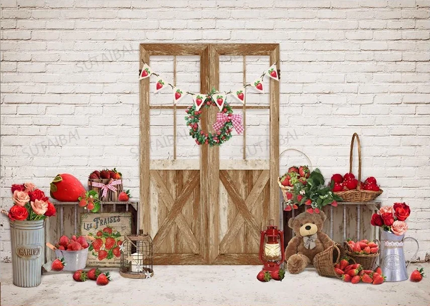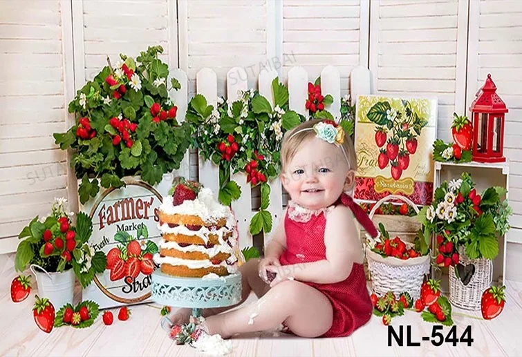 Фон для фотосъемки с изображением милой клубники фермерского рынка для дня рождения девочки, корзины с цветами, декоративный фон для фотосъемки