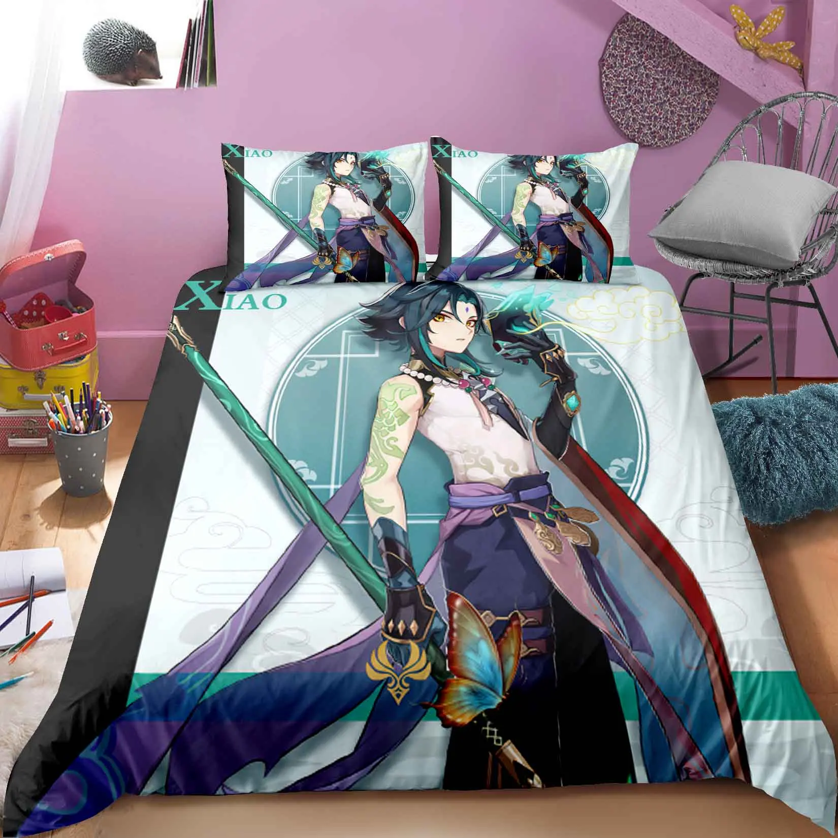 Набор постельного белья игровой Genshin Impact xiao 3d набор пододеяльников для пуховых одеял набор постельного белья Twin Queen King один размер Прямая поставка CartooОписание товара