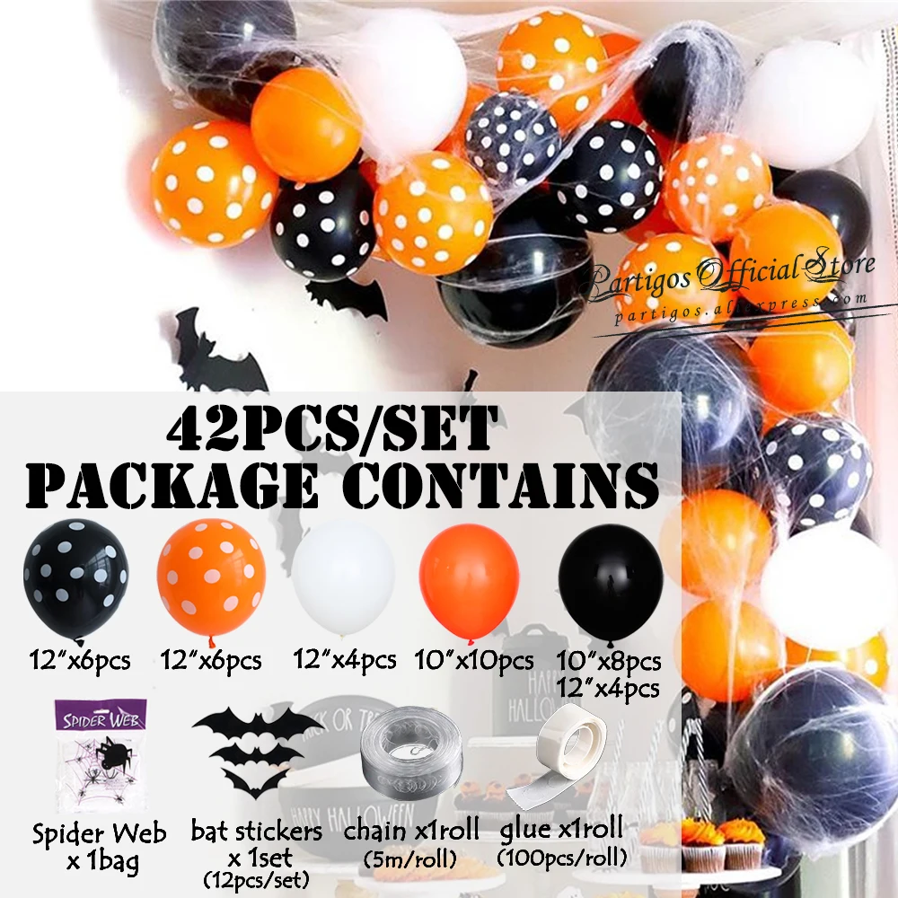 Набор декоративных гирлянд, в черный, оранжевый горошек шарики в горошек, 42 шт., Арка из воздушных шаров для Хэллоуина, вечерние, украшения для Хэллоуина, наклейка в форме летучей мыши