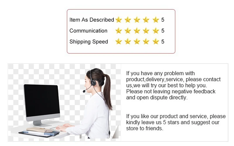 Добро пожаловать оптом!Добро пожаловать в дропшиппинг!Добро пожаловать, чтобы задать нам любые вопросы, спасибо, что искали!Доставка1. Мы отправляем товары по всему миру (за исключением некоторых стран и APO/FPO).2. Мы отправляем только по подтвержденным адресам заказа. Ваш адрес заказа должен совпадать с вашим адресом доставки.3. Заказы обрабатываются своевременно после подтверждения оплаты.4. Мы отправим посылка из Китая авиапочтой.5. Время доставки зависит от перевозчика, таможни и почтовой отправки пункта назначения и других факторов. Большинство упаковок может быть получено в течение 20 рабочих дней (4 недели).Политика Возврата1. Мы принимаем запросы на возврат по электронной почте в течение 7 рабочих дней с момента получения вашего заказа. Если данный товар находится в вашем распоряжении более 7 дней, он считается пользованным товаром, и мы не производим возврат или замену.2. Если вы не удовлетворены полученным товаром, пожалуйста, верните его в течение 7 дней для замены или возврата денег. Перед возвратом товара, свяжитесь с намиВсе товары ДОЛЖНЫ возвращаться в оригинальной упаковке. Кроме того, НЕОБХОДИМО ПРЕДОСТАВИТЬ номер отслеживания посылки, конкретную причину возврата и ваш номер заказа.3. Если товар неисправен в течение 3 месяцев, мы отправим вам замену без дополнительной платы или предложим возврат средств после получения дефектного товара.4. Если товар неисправен после 3 месяцев, вы все еще можете отправить его нам. Мы отправим вам новый товар после получения товара с дефектом. Но вам нужно оплатить дополнительную стоимость доставки.5. Вы соглашаетесь со всеми вышеперечисленными правилами при заказе на aliexpress!Отзывы1. В том случае, если вы удовлетворены нашим товаром и обслуживанием, то, пожалуйста, оставьте нам положительный Отзывы и поставьте 5 звезд, обратная связь очень важна для нас.2. Мы будем очень признательны, если вы оставите здесь свое настоящее чувство.3. Если вы не удовлетворены товарами или нашим обслуживанием, пожалуйста, свяжитесь с нами, прежде чем оставлять какие-либо отзывы, мы немедленно решим проблему, спасибо!Свяжитесь с нами1. Пожалуйста, отправьте нам сообщение с 9:00am. До 18:00 вечера. (GMT + 8) с понедельника по субботу.2. Если у вас есть какие-либо вопросы, пожалуйста, напишите нам и дайте нам шанс помочь вам. На все сообщения будет дан ответ в течение 1 рабочего дня (за исключением государственных праздников в Китае). Если вы не получили наш ответ,3. Пожалуйста, любезно повторно отправьте ваше сообщение, и мы ответим вам как можно скорее.4. Мы приносим извинения за поздний ответ во время праздников (включая воскресенье).