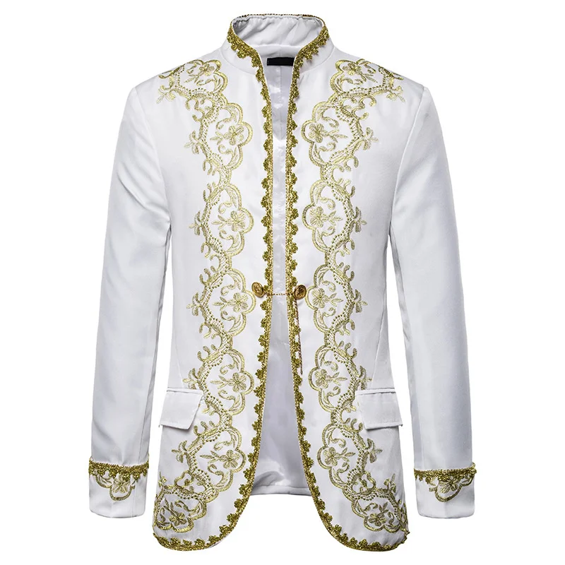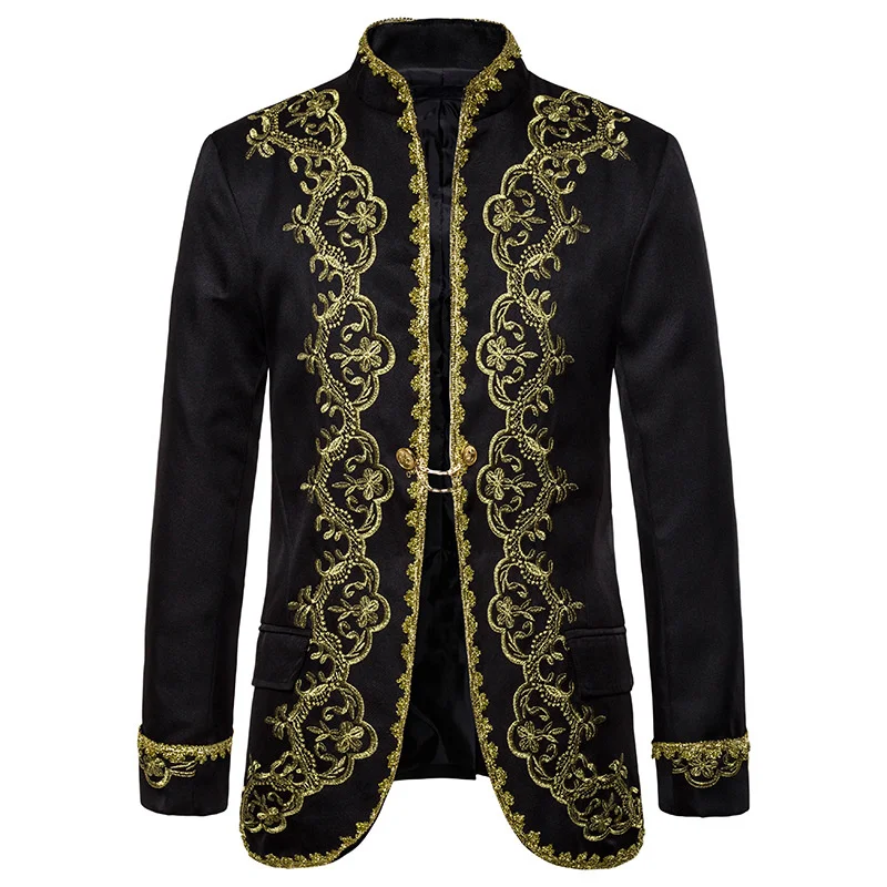 Мужской двубортный Блейзер, в стиле барокко, с золотой вышивкой