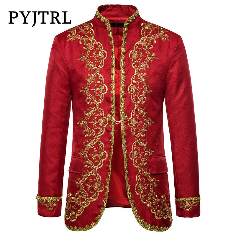 Мужской Красный блейзер с золотой вышивкой в стиле барокко, Мужской...