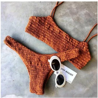 Бикини женское, с эффектом пуш-ап, треугольное, со складками, 2017