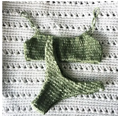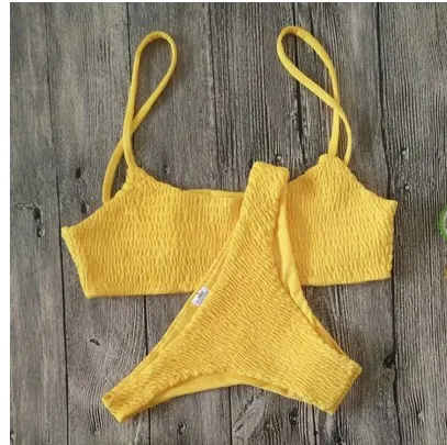 Желтый Вязаный сексуальный комплект бикини с оборками, женский бюстгальтер пуш-ап с подкладкой, бикини, купальник, треугольный купальник, купальный костюм для женщин