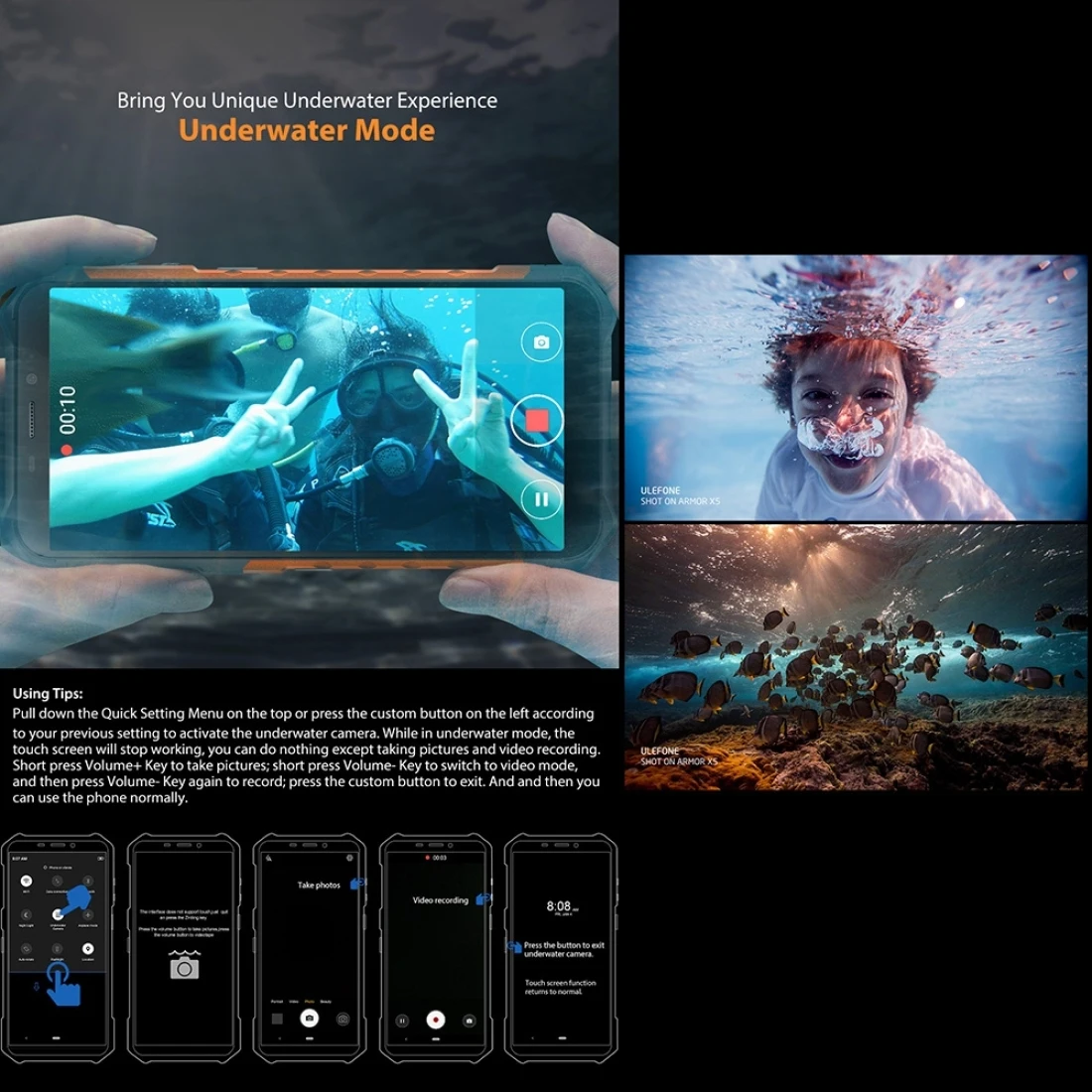 Смартфон Ulefone Armor X5 защищенный, 3 + 32 ГБ, 5000 мА ч, экран 5,5 дюйма, Android 9,0, Восьмиядерный процессор MTK6763, технология OTG, NFC4G