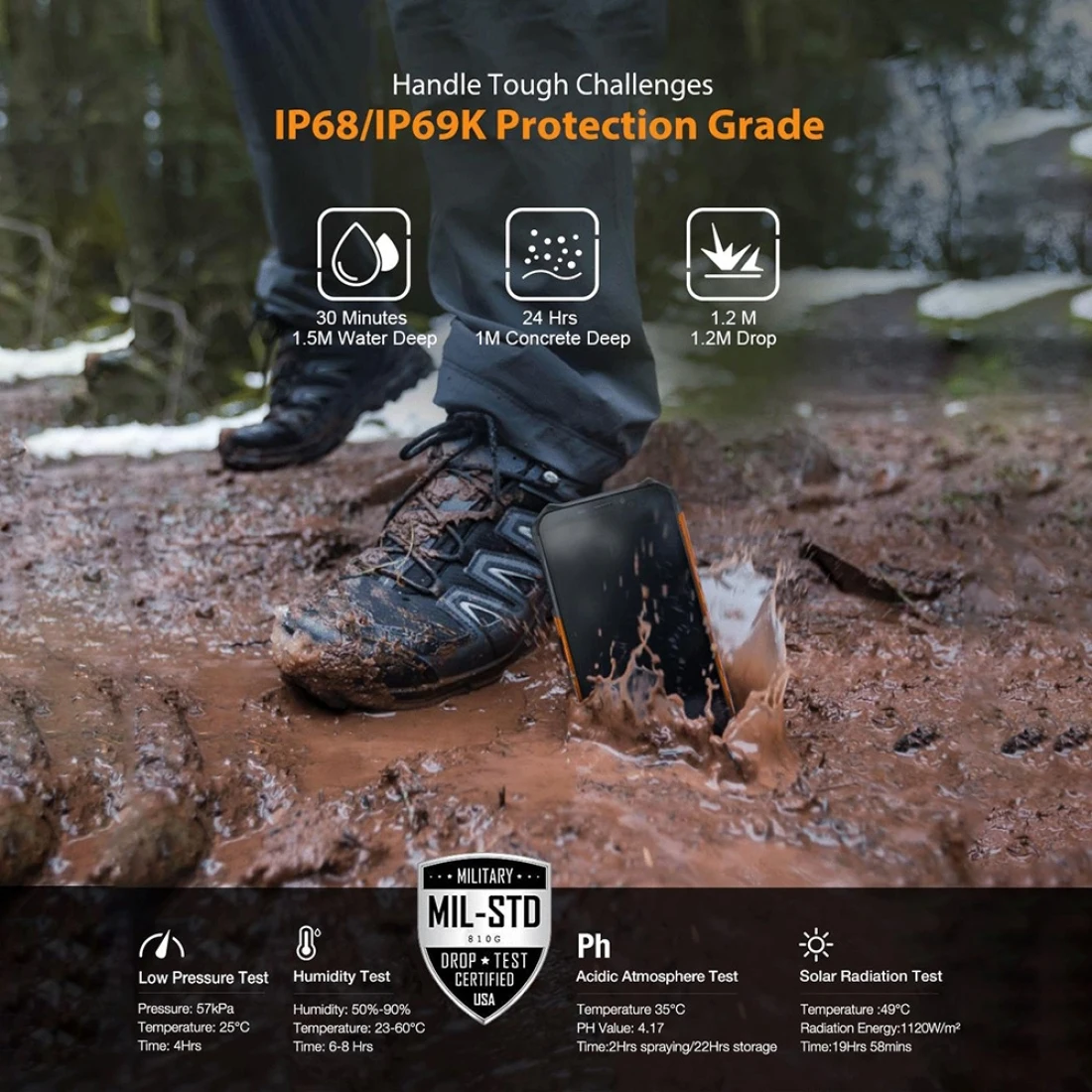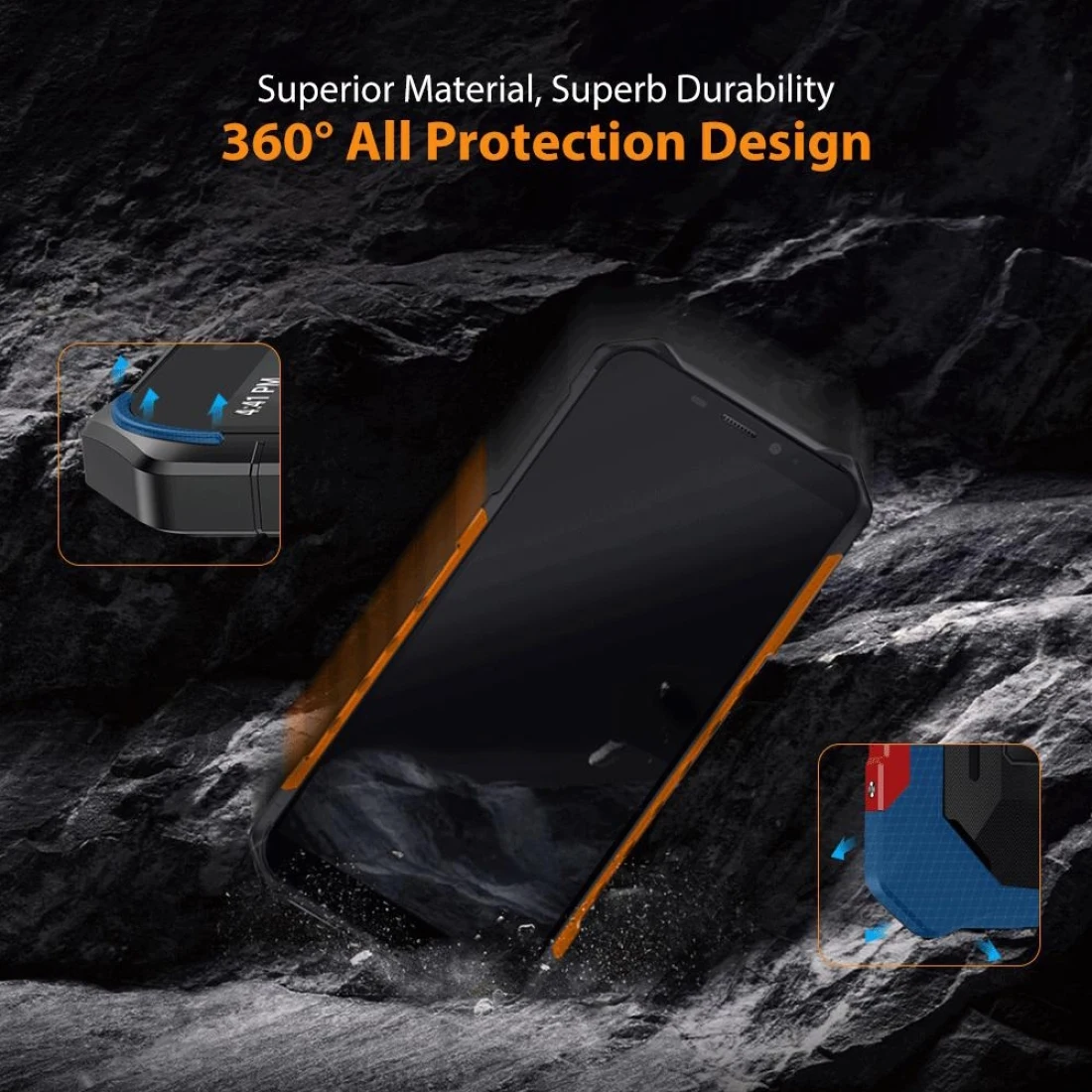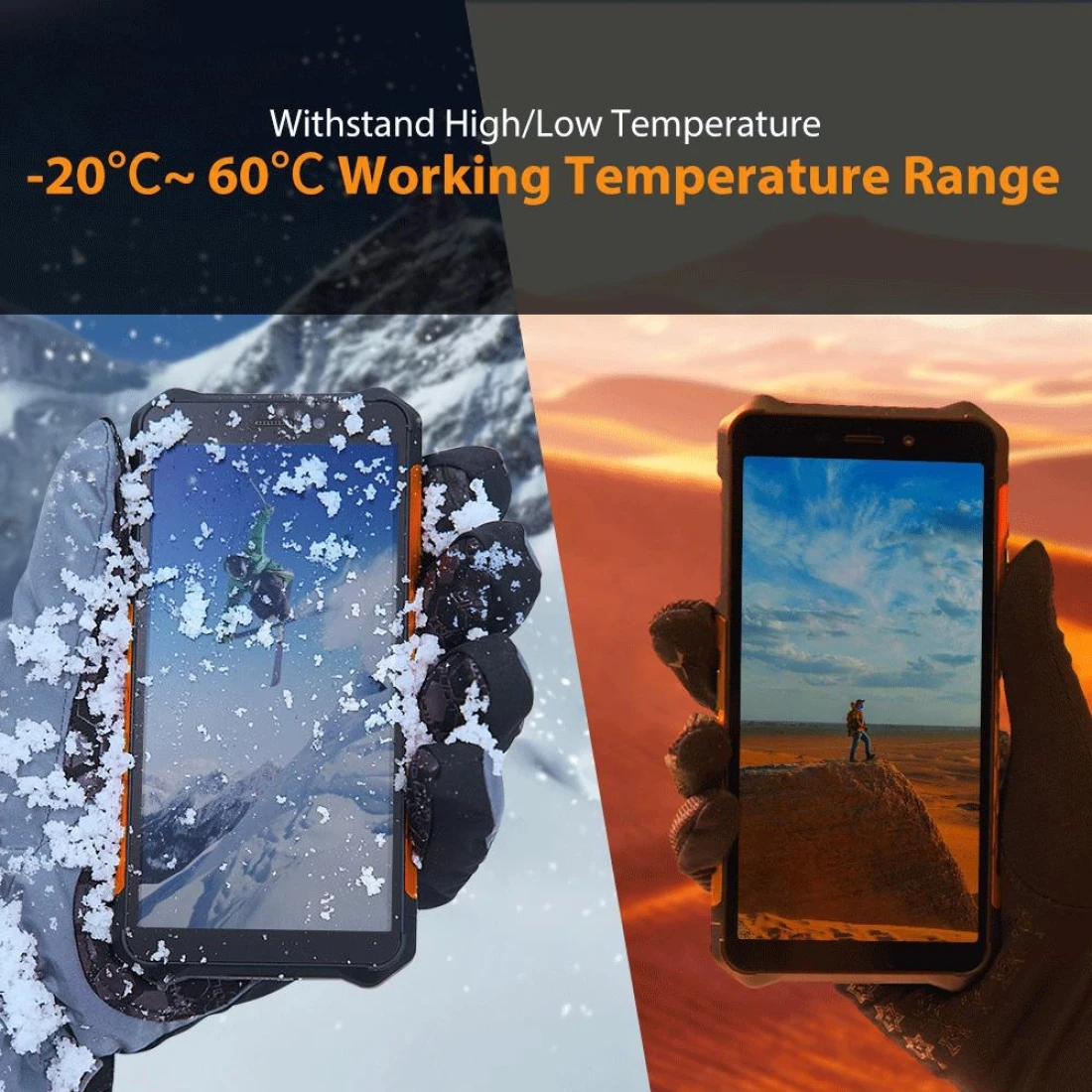 Особенности1. MTK6763 Восьмиядерный 64-разрядный до 2,0 ГГц Процессор, хорошая производительность, работает быстро и работать гладко.2. 5,5 дюйма 18:9 дисплей, маленький размер, большая, 1440x720 пикселей, прозрачная защитная пленка, vivid цвета, хорошо подходит для просмотра видео, играть в игры.3. Всесторонняя защита на 360 градусов, прочная и долговечная в использовании.4. Уровень IP68/IP69K водонепроницаемый пыленепроницаемый ударопрочный, он может быть использован в широком использовании сценариев и приложений.5. Питание от 5000 мАч высокой емкости 4,4 V литий-полимерный аккумулятор, длительный срок использования.Сеть1. 2G Частота сети:-GSM: (B2/3/5/8) 1900/1800/850/900 МГц2. 3G Частота сети:-WCDMA: (B1/2/4/5/8) 2100/1900/1700/850/900 МГц3. 4G Частота сети:-LTE-FDD: (B1/B2/B3/B4/B5/B7/B8/B12/B17/B19/B20/B28A/B28B) 2100/1900/1800/1700/850/2600/900/700/700/850/800/700/700 МГц4. Поддержка VoLTE: Можно ли использовать VoLTE, зависит от местных перевозчиков, потому что не все местные Перевозчики могут поддерживать эту функцию.